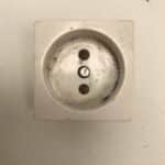 Vanha valkoinen pyöreä maadoitettu pintapistorasia