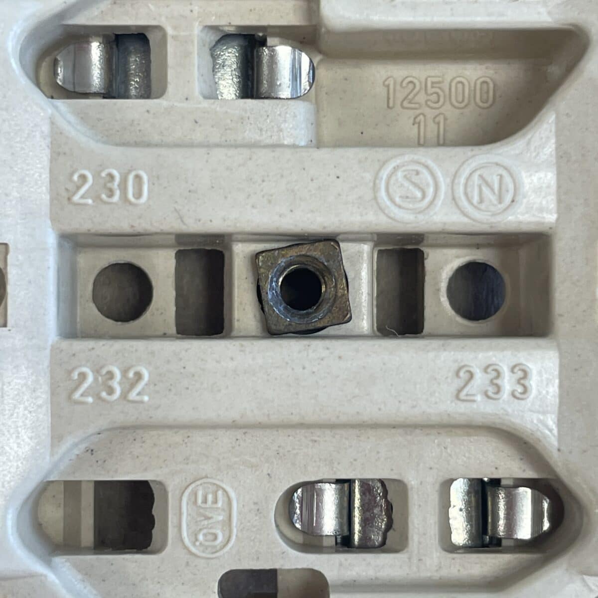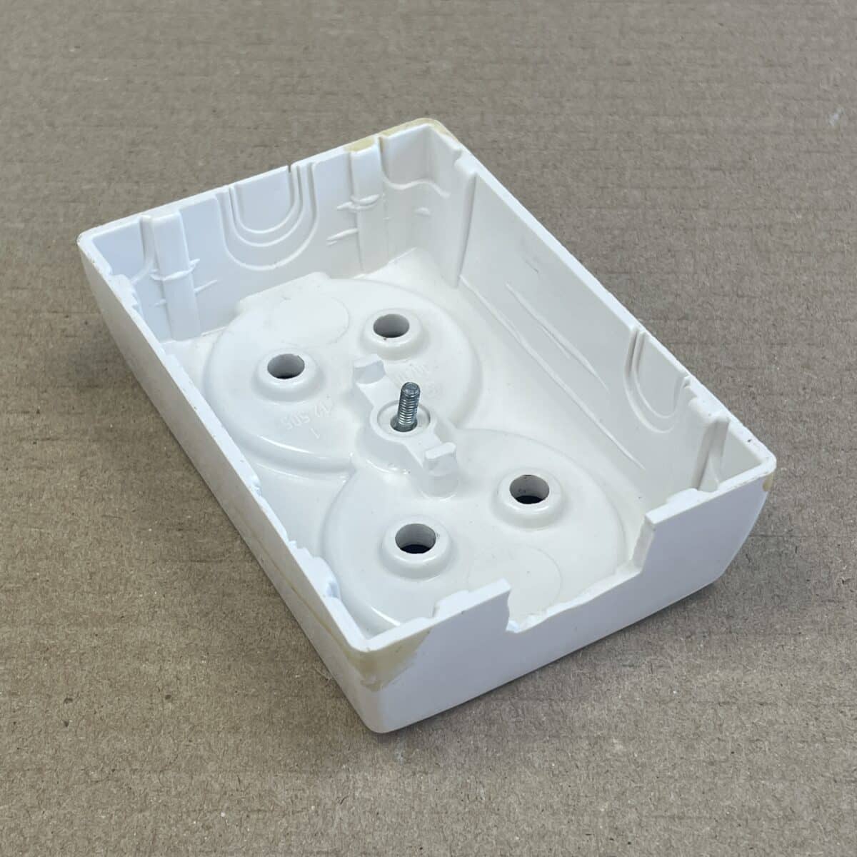 Huom! Kytkentä ruuviliittimin. Kannessa on yksi aihio aukaistu. Kannen reunassa on keltaista maalia.