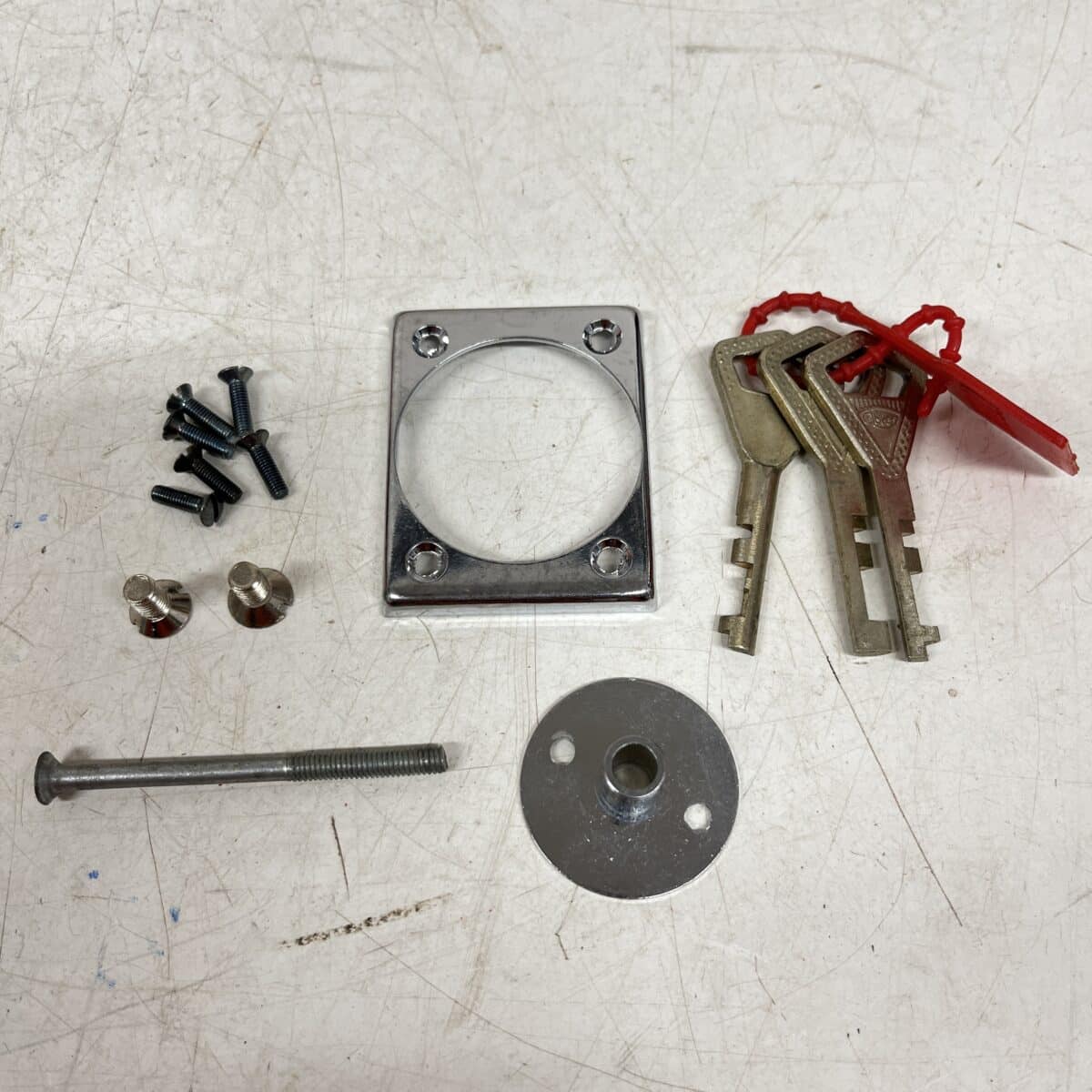 Sisältää kuvien asennustarvikkeet ja ohjeet, sekä 3 kpl avaimia.