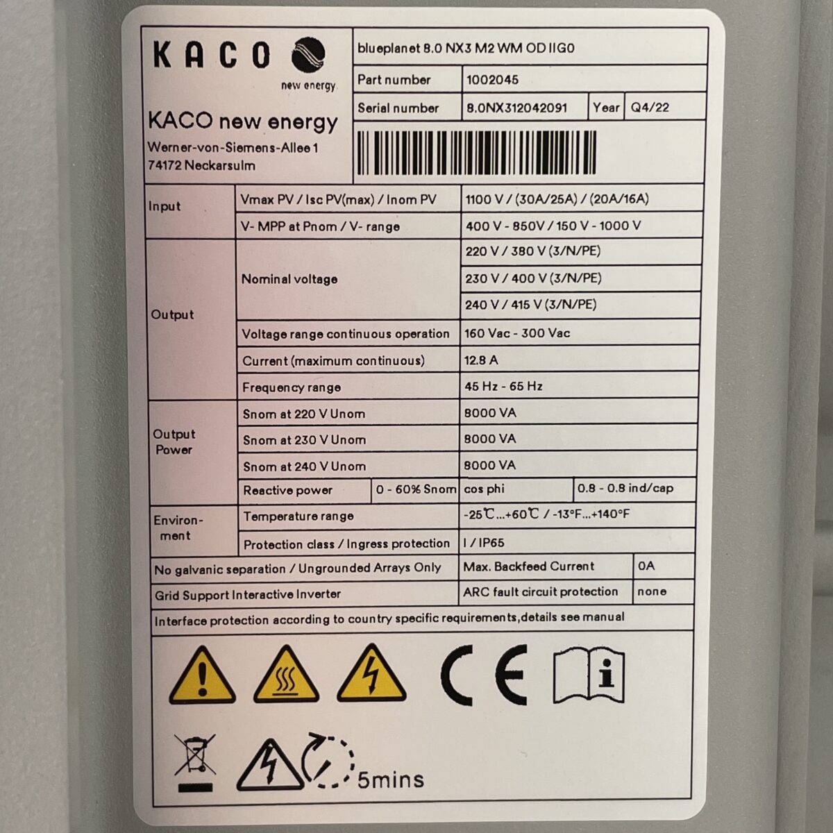 PV Inverter KACO blueplanet 8.0 NX3 M2 8 kW