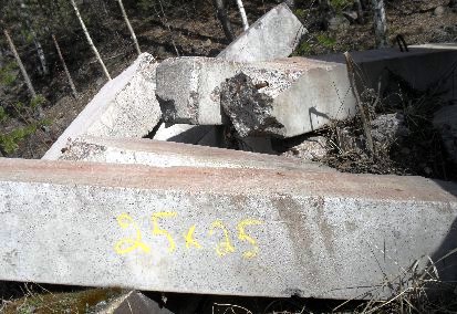 Betonipaalun 25×25 cm pätkiä, yksittäisen palan pituus noin 3 m