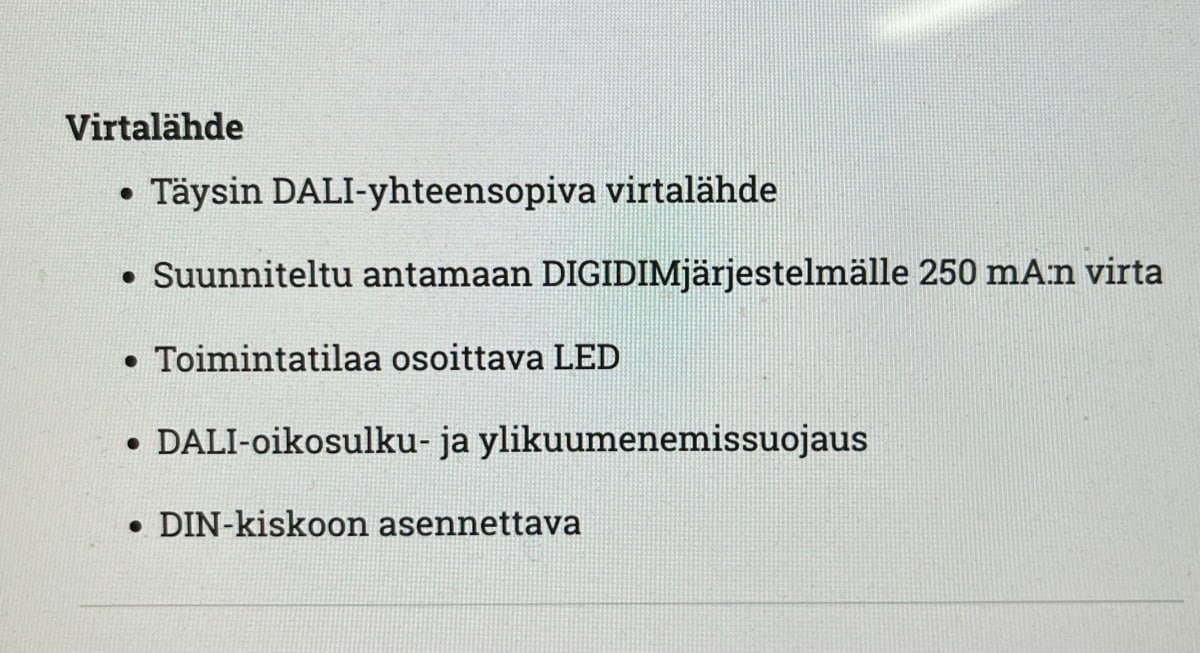 Virtalähde ohjelmoitavaan DALI-valaistusjärjestelmään.