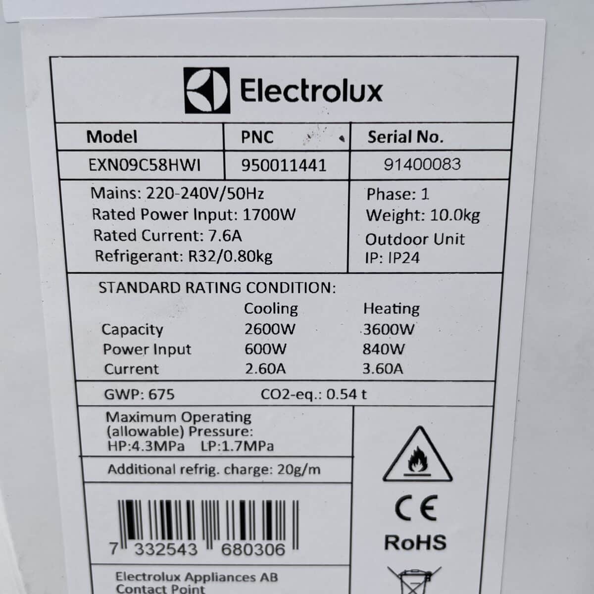 Ollut Electrolux ilmalämpöpumpun EXN09C58HWI