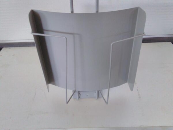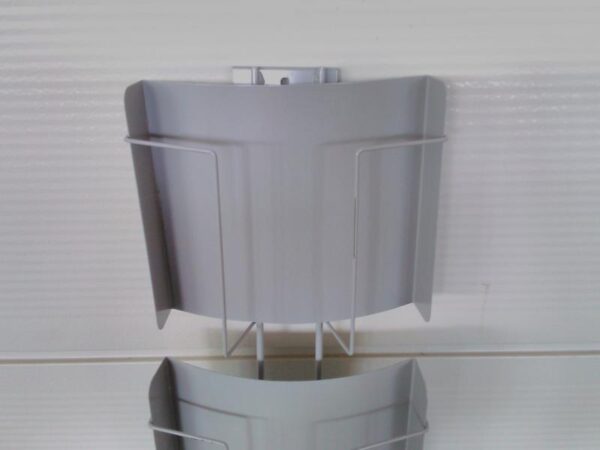 kierrevihko, jonka mitat on 22 cm * 29,5 cm. Joitain naarmuja ym. löytyy. Lattialla oleva valkoinen levy ei kuulu telineeseen vaan on vain kuvausalustana. Teline on tarkoitettu kiinnitettäväksi telineeseen/seinään ym.