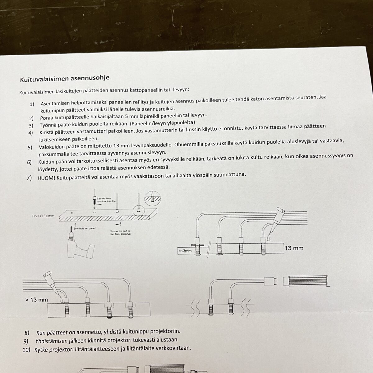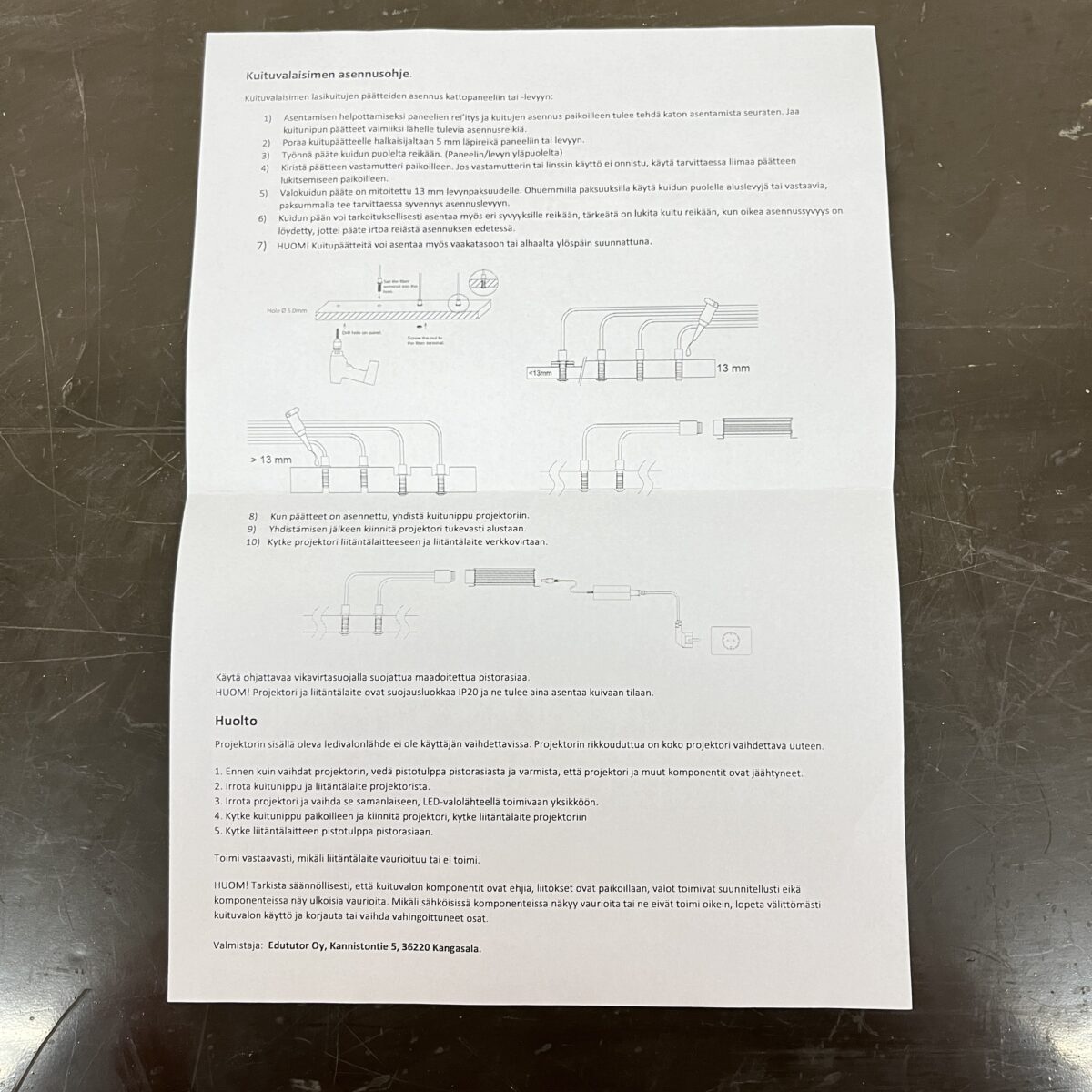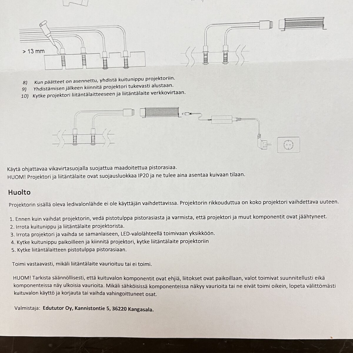 Huom! Projektori asennettava kuivaan tilaan.