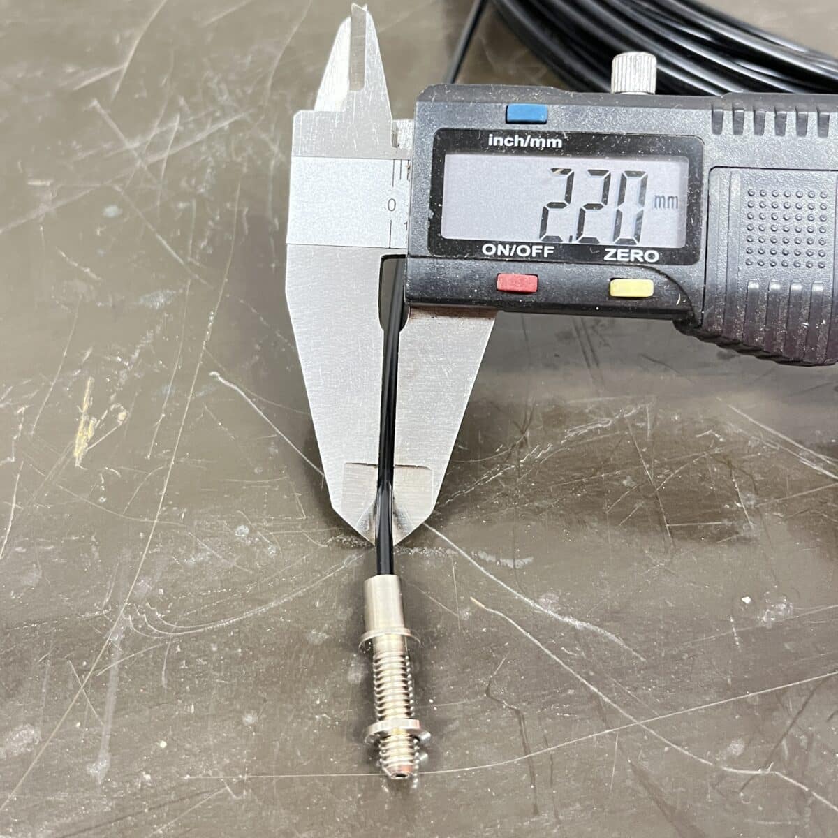 metallipään ulkohalkaisija on 4,75 mm ja kuidun halkaisija 2,2 mm
