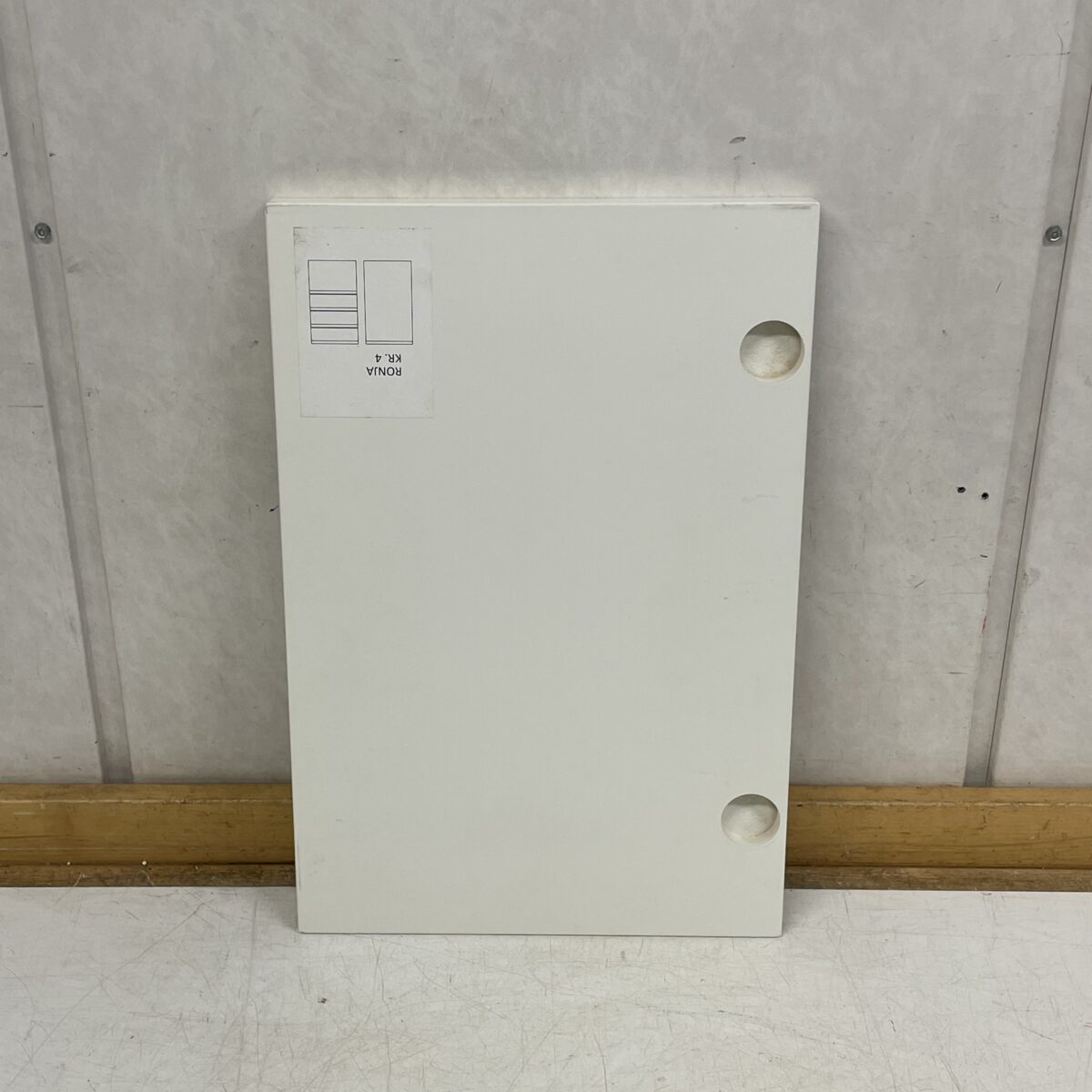 Huom! Ollut malliovena. Kiinteä vedin oven alareunassa. Ovi ei sisällä saranoita. Saranaupotukset ∅ 35 mm. Oven etuosan maalipinnassa on useita jälkiä kulumisesta, ks. kuvat.