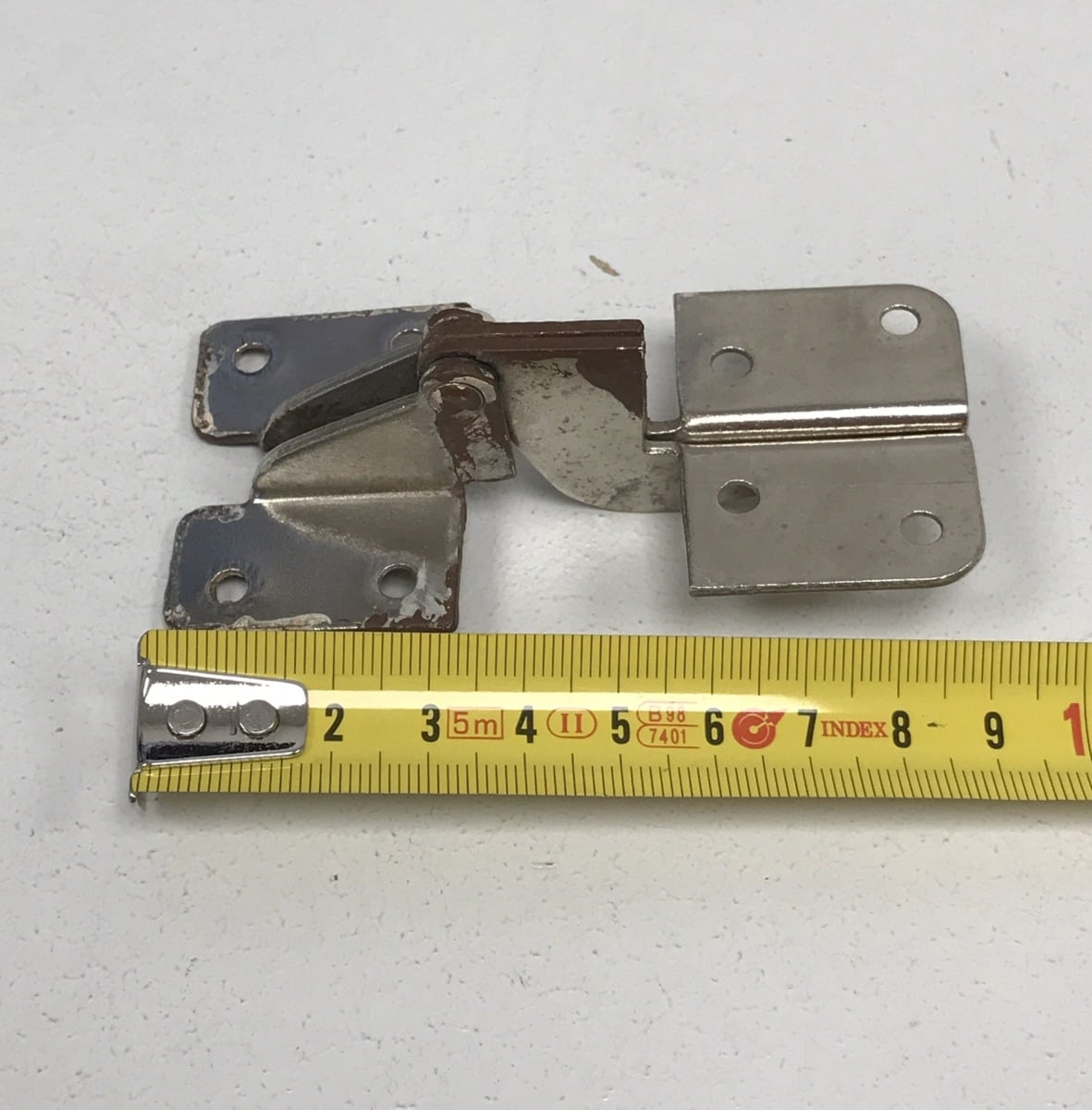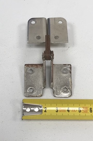Huom! Saranoissa on paikoitellen ruostetta ja maalia. Mittakuvat ovat vastaavasta saranasta, jossa ruostetta/maalia ei ole. Koodilla 4172 voi vielä löytyä vastaavaa saranaa https://www.purkukolmio.fi/tuote/kalustesarana-pituus-92-mm