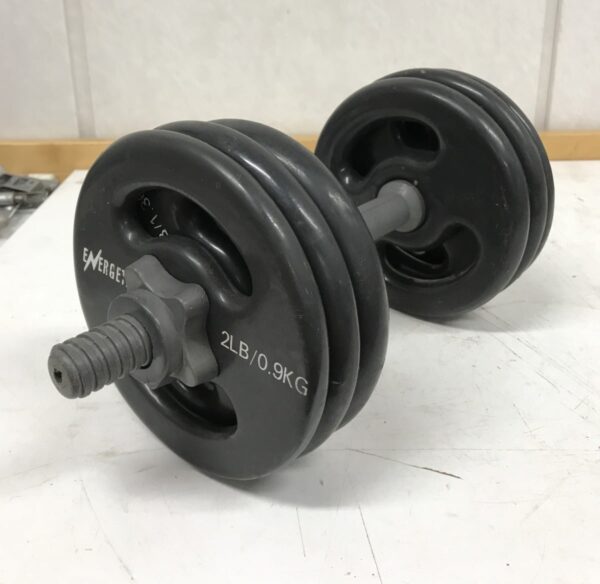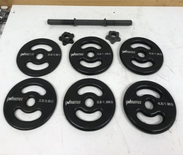 Käsipaino 9 kg Energetics säädettävillä painoilla, kumitetut kiekot