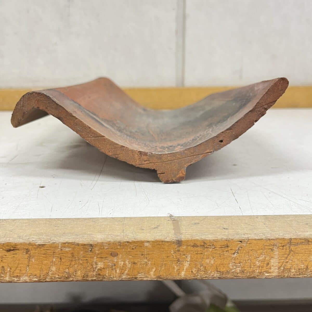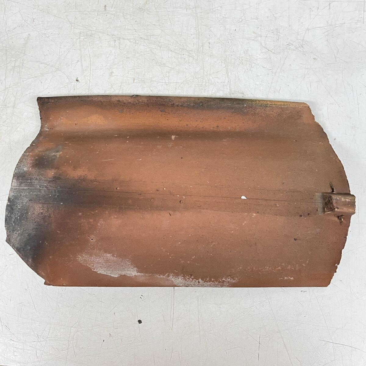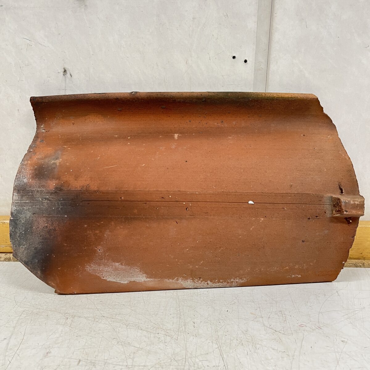 Katon vesikourun tiili, tiili malliltaan hieman kieron mallinen.