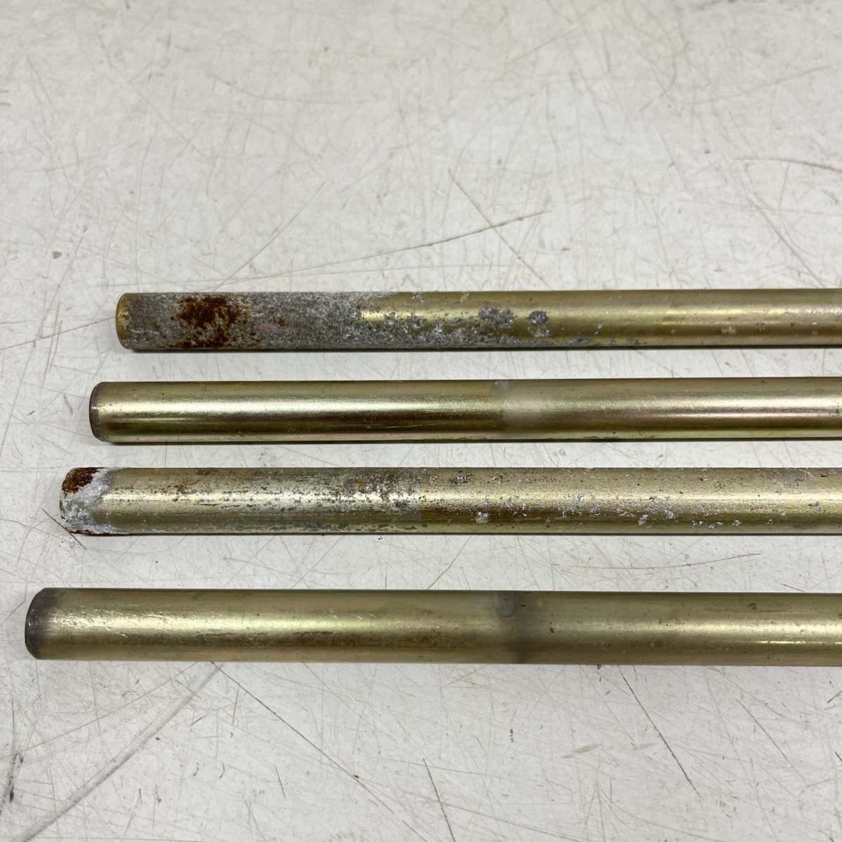 Keltapassivoitu teräsputki Ø 14 mm pituus 710 mm hapettumaa