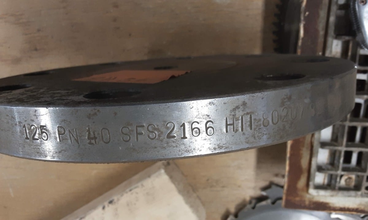 Tiedot laipan reunassa: 125 PN40 SFS 2166 HIT 80207