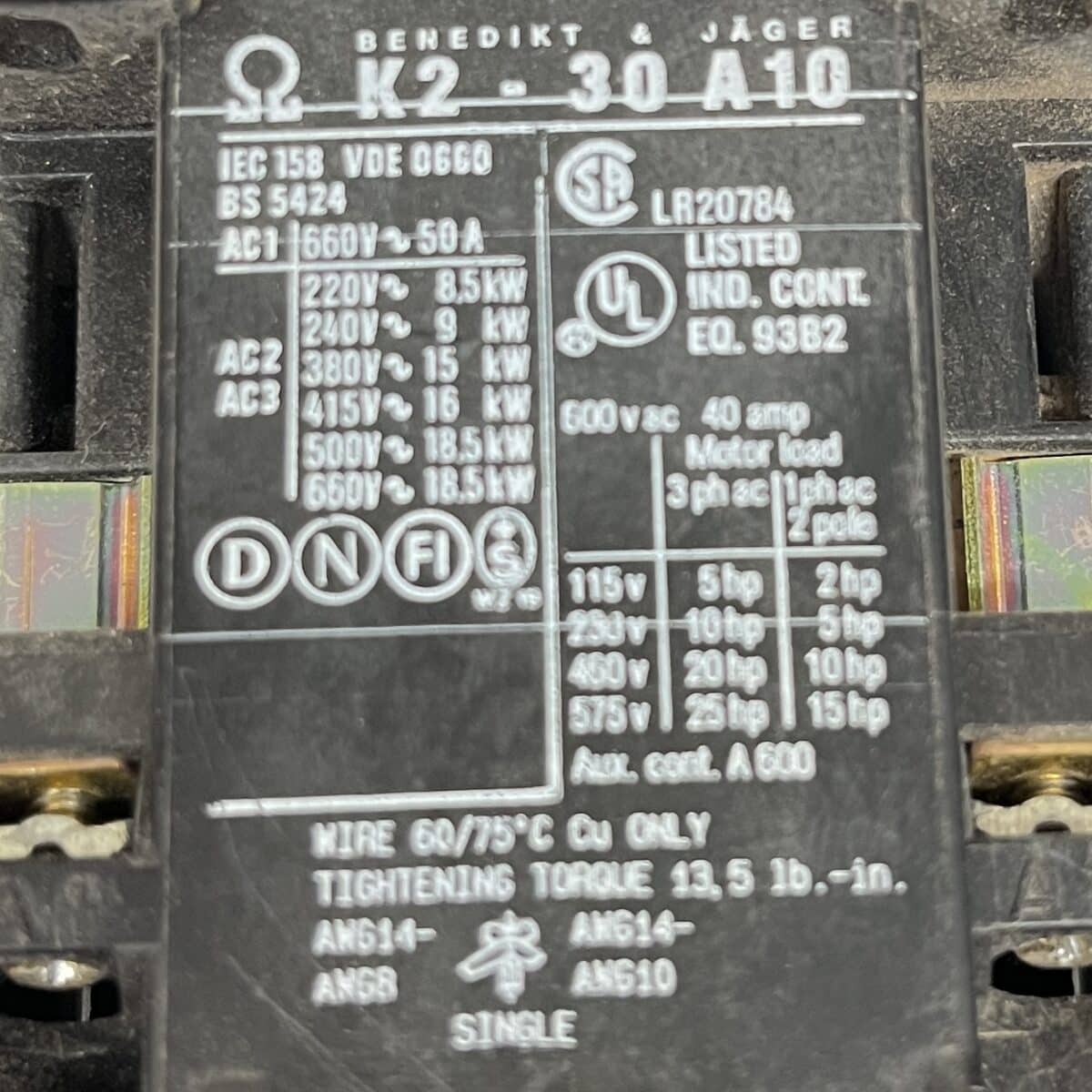 Kontaktori Benedikt & Jäger K2 – 30 A10 220-240V kelalla