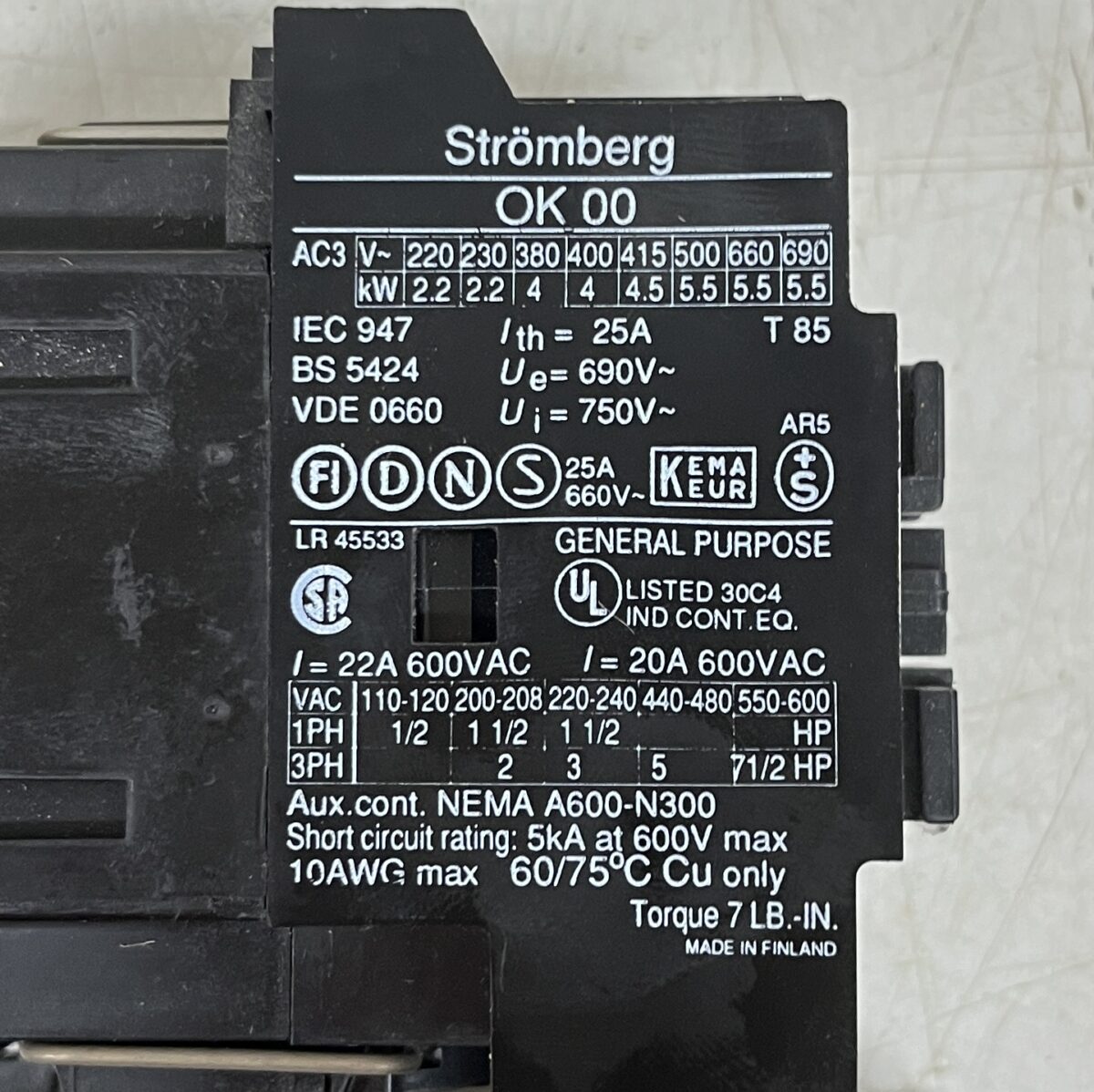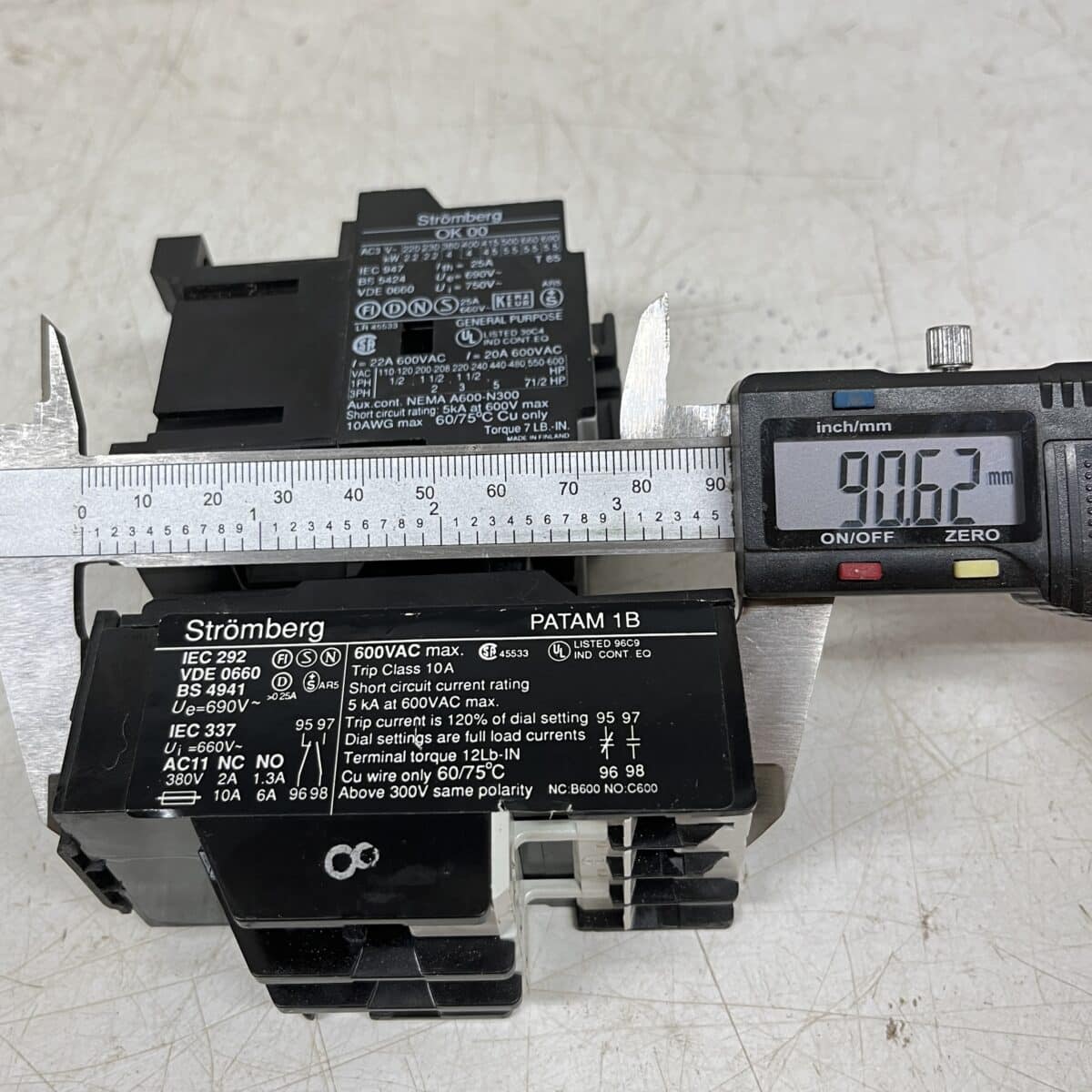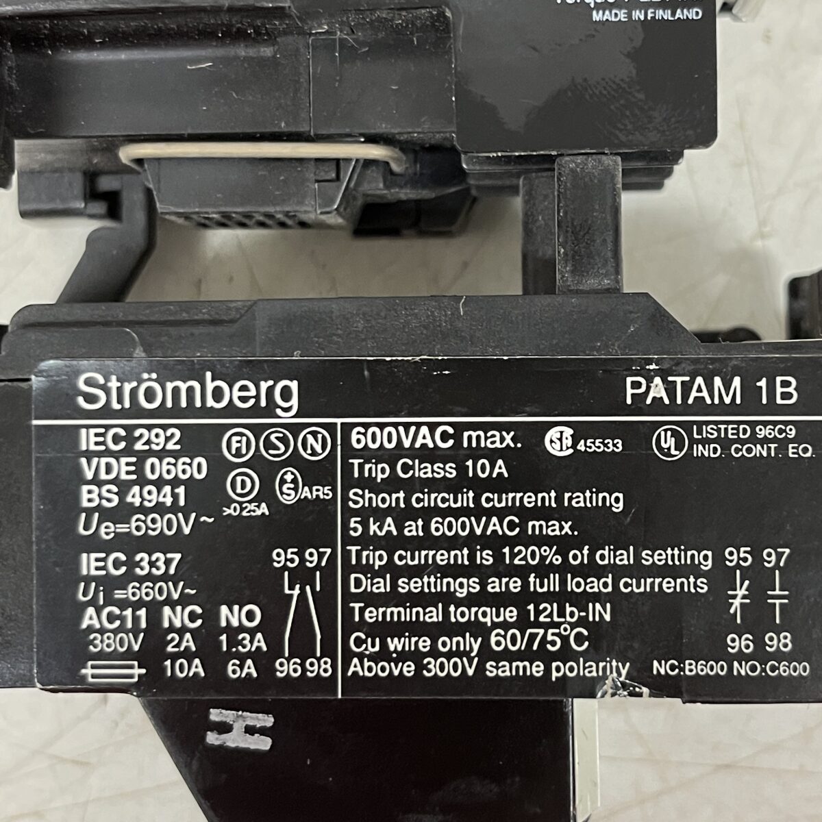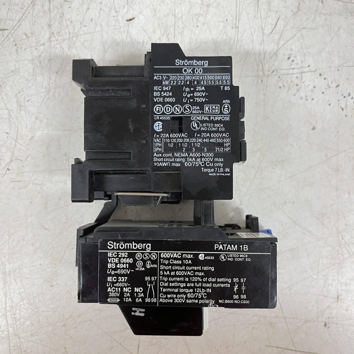 Kontaktori Strömberg OK00 W 10 230V kelalla ja lämpörele Patam 1B 13-19 A