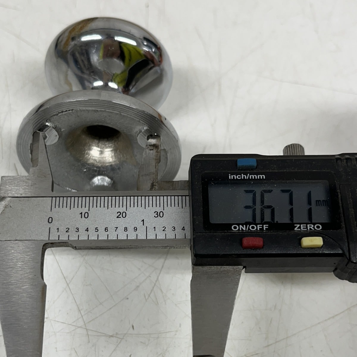 Kromattu metallinuppi