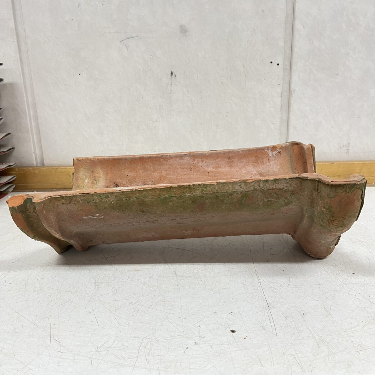Vastaavanlainen kuin Keramia harjatiili koodilla 8660, jota löytyy ehkä vielä täältä https://www.purkukolmio.fi/tuote/keramia-harjatiili-punainen-pituus-37-cm-pienia-lohkeamia-2