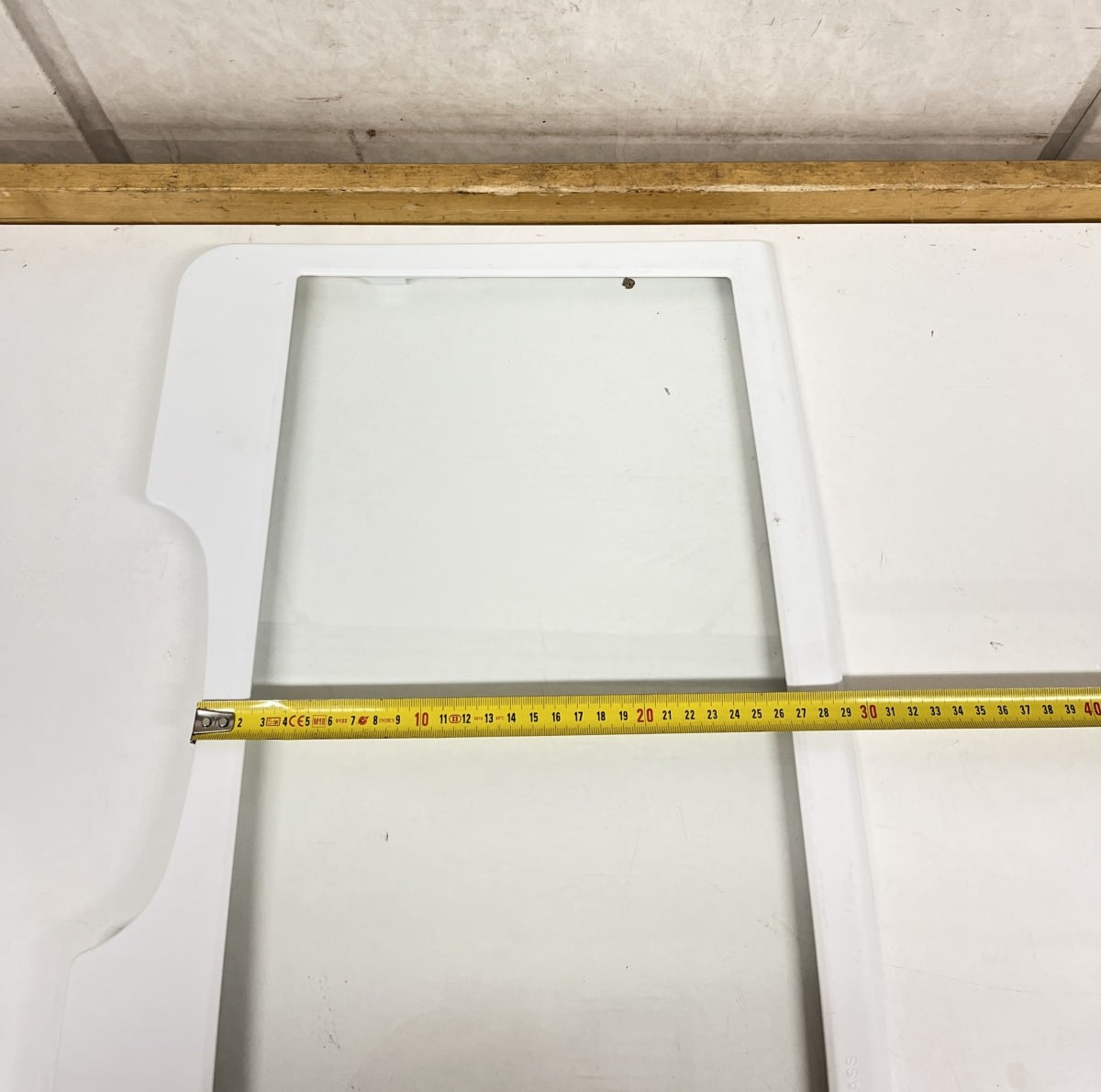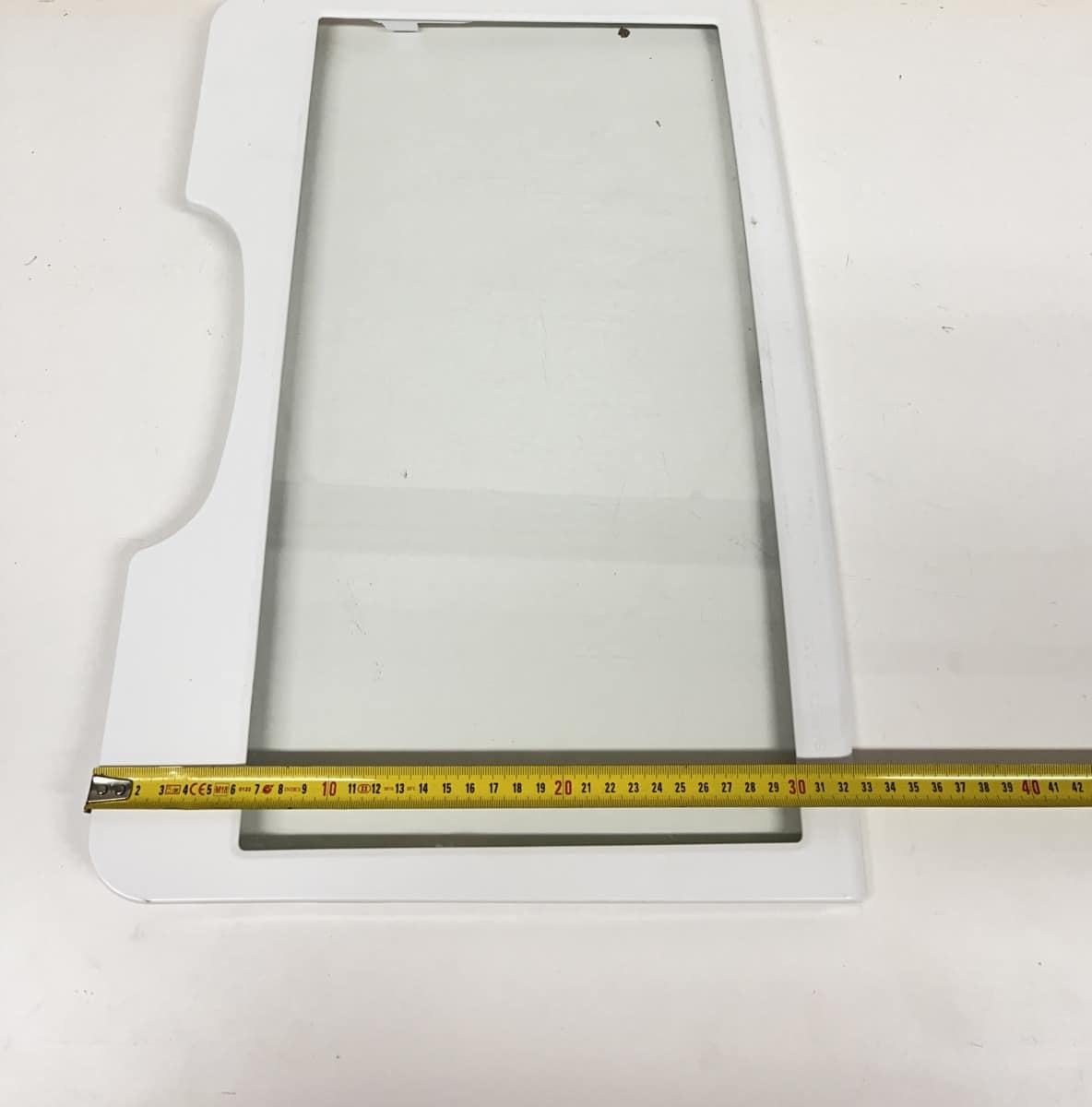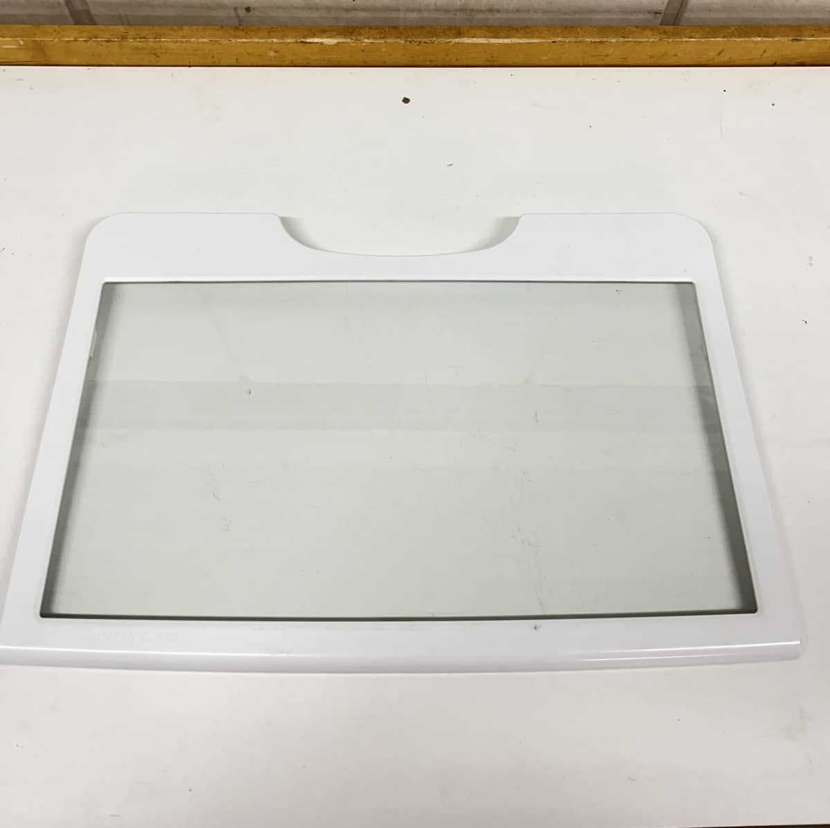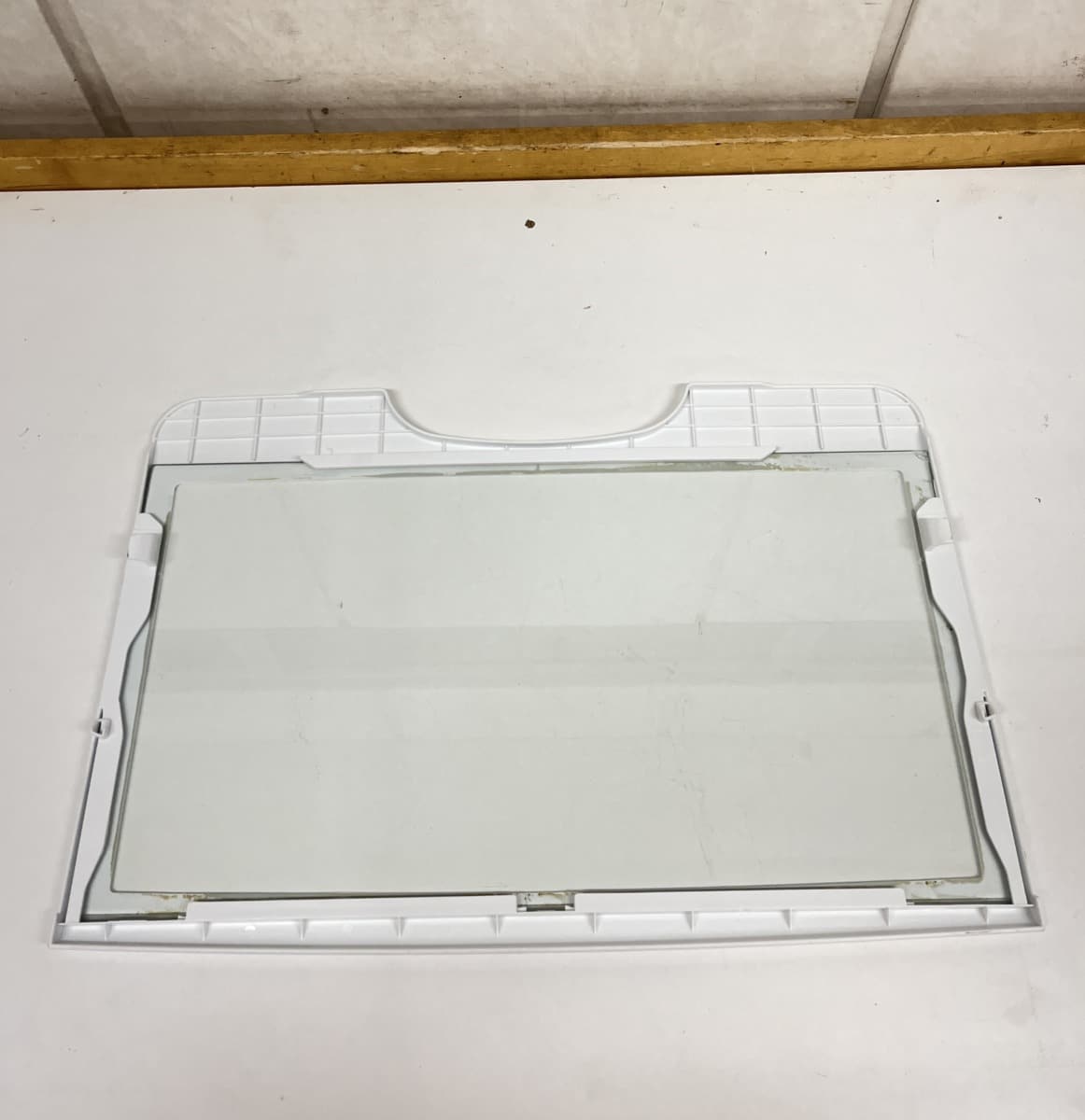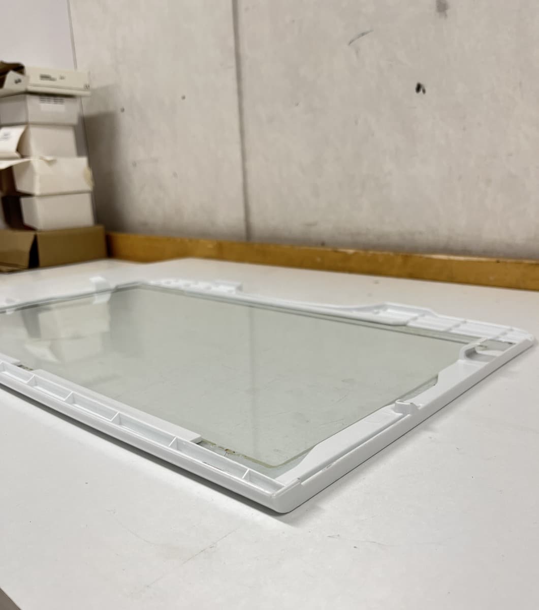 Jääkappiosan alahylly, takareunassa kaareva kolo