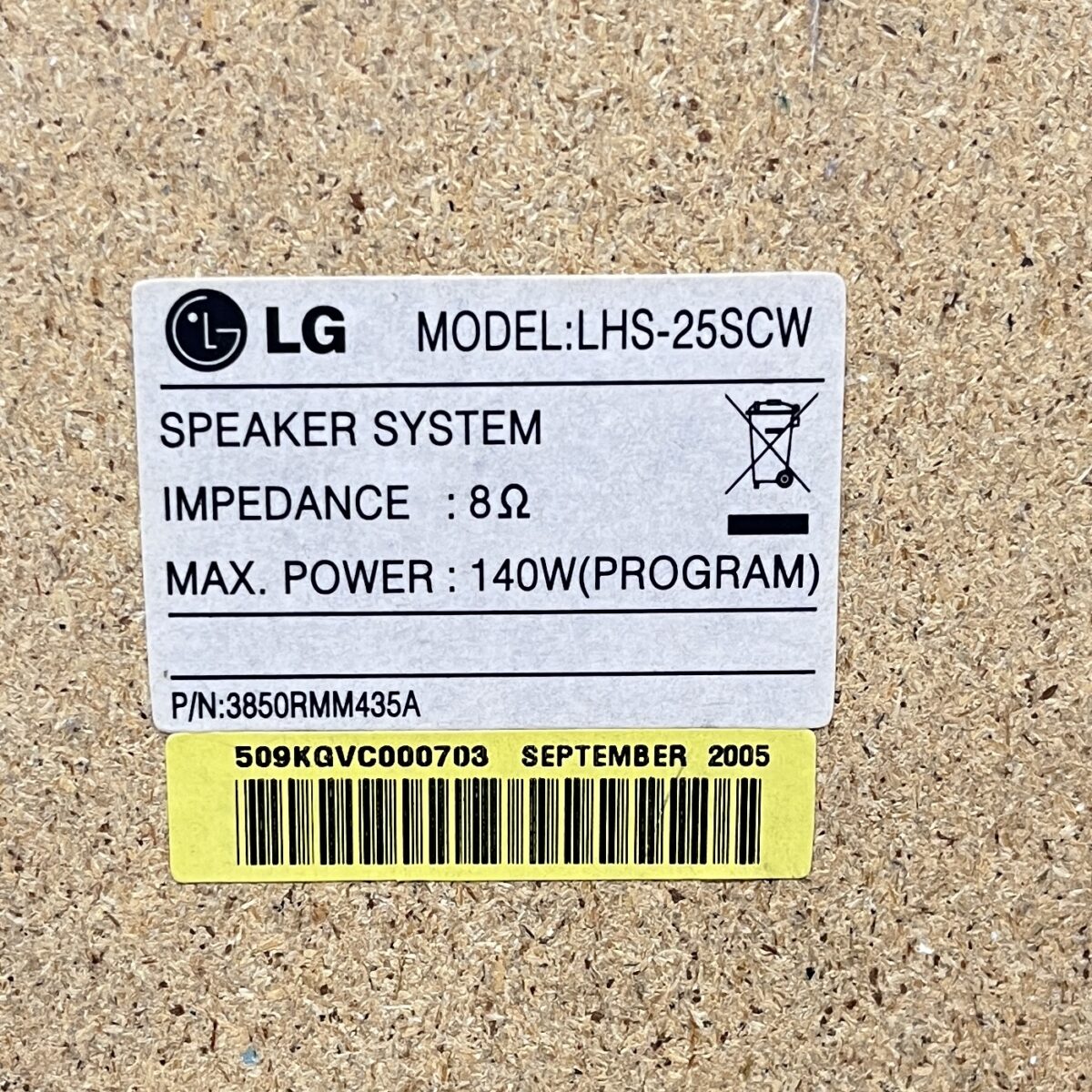 LG Model: LHS-25SCW