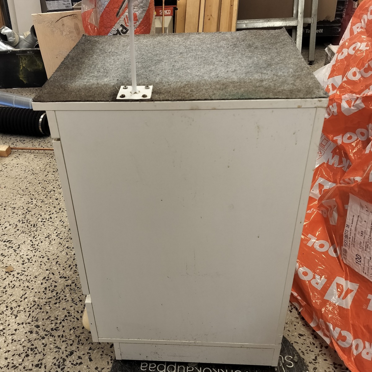 Materiaali: kalustelevy, tason päällä huopakangas