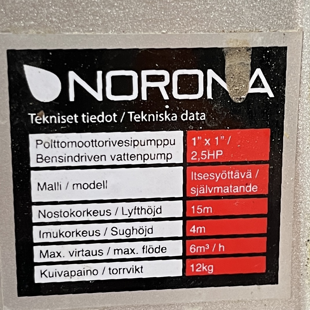 Norona 152F/P 4-tahti polttomoottorivesipumppu 1″/ 2,5 Hp 3600 rpm korjattavaksi