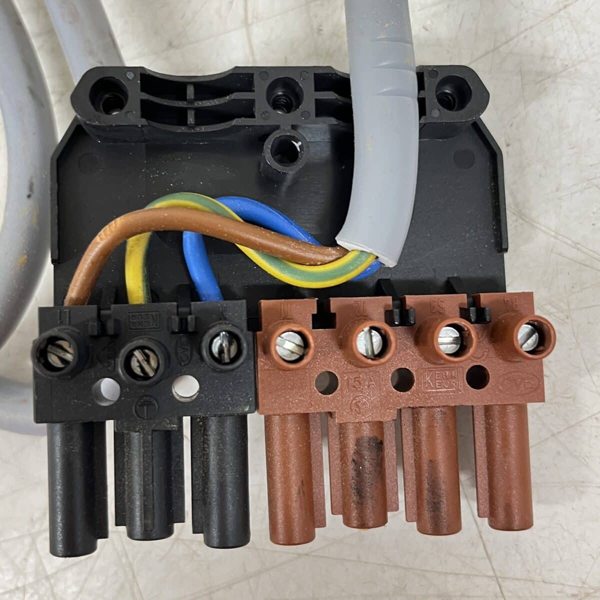 Öljypolttimen sähkösyöttö kytketty 3 napaisella johdolla,