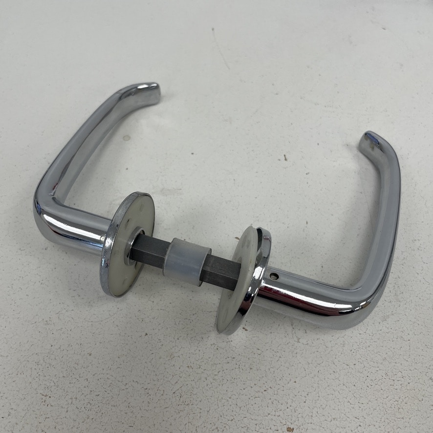 Osassa painikeparin kuvia on lukitustapit paikoillaan. Kuvat ovat vastaavista kahvoista kiinnitystapilla, joita löytyy ehkä vielä täältä https://www.purkukolmio.fi/tuote/oven-kromattu-painikepari-4.