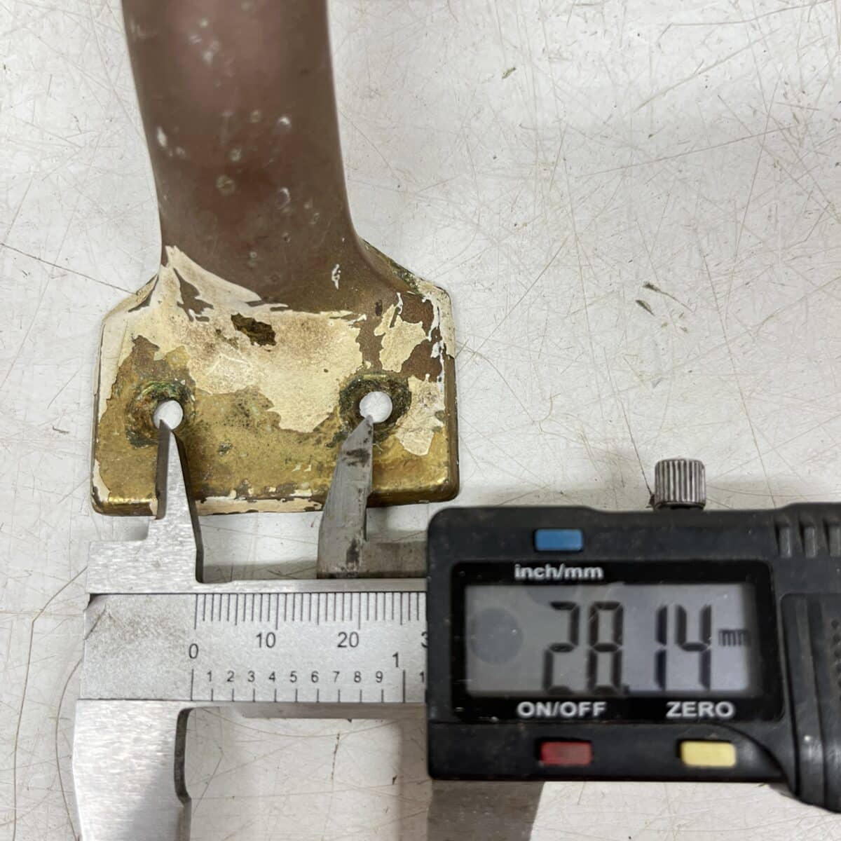 Huom! Maalia ja hapettumaa. Lommoinen, koska kuparilevy