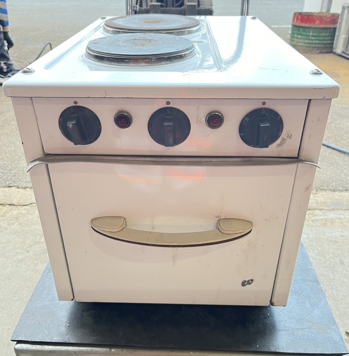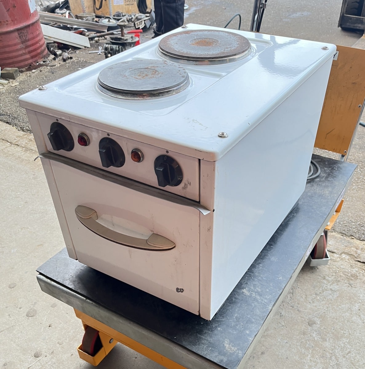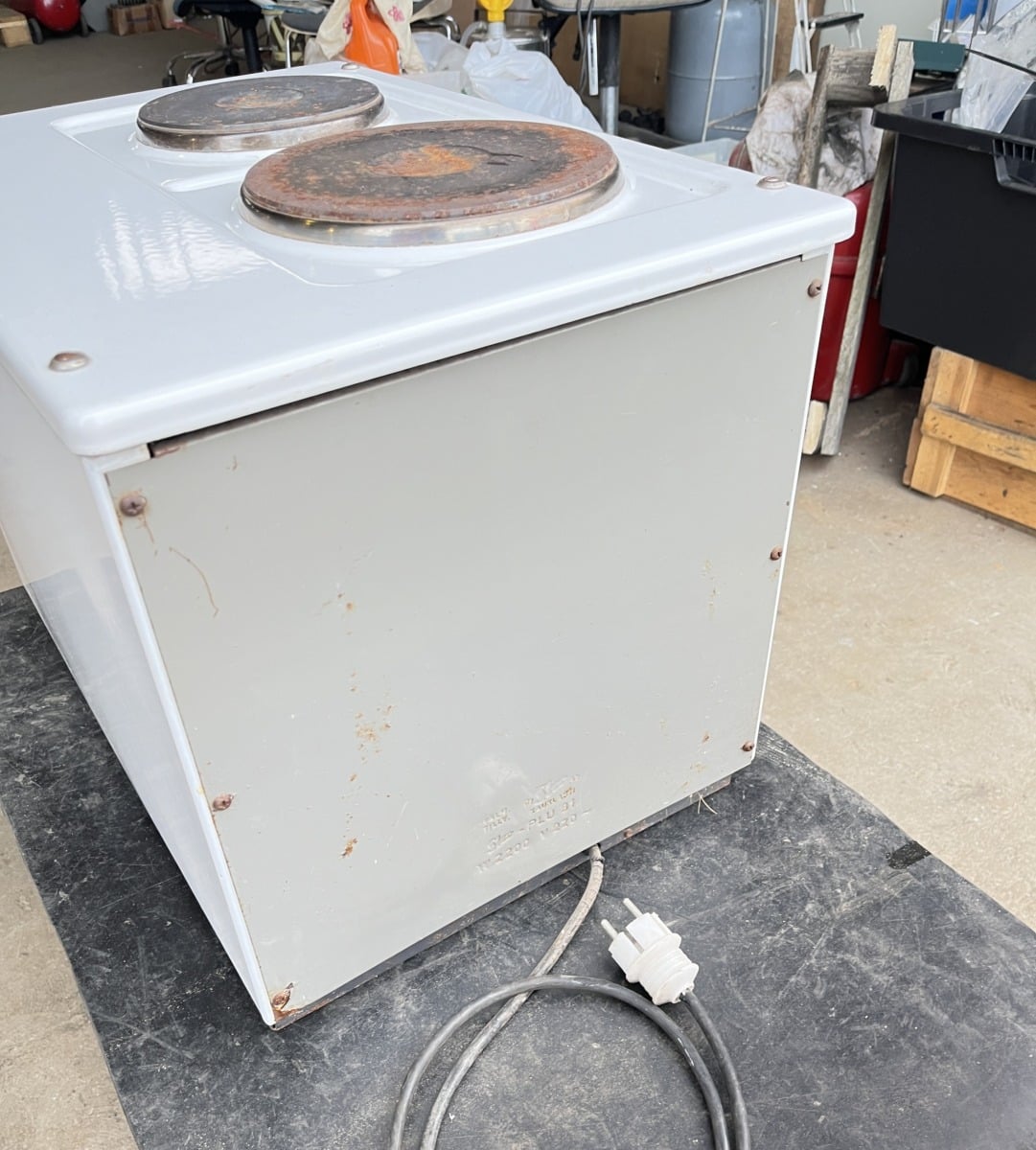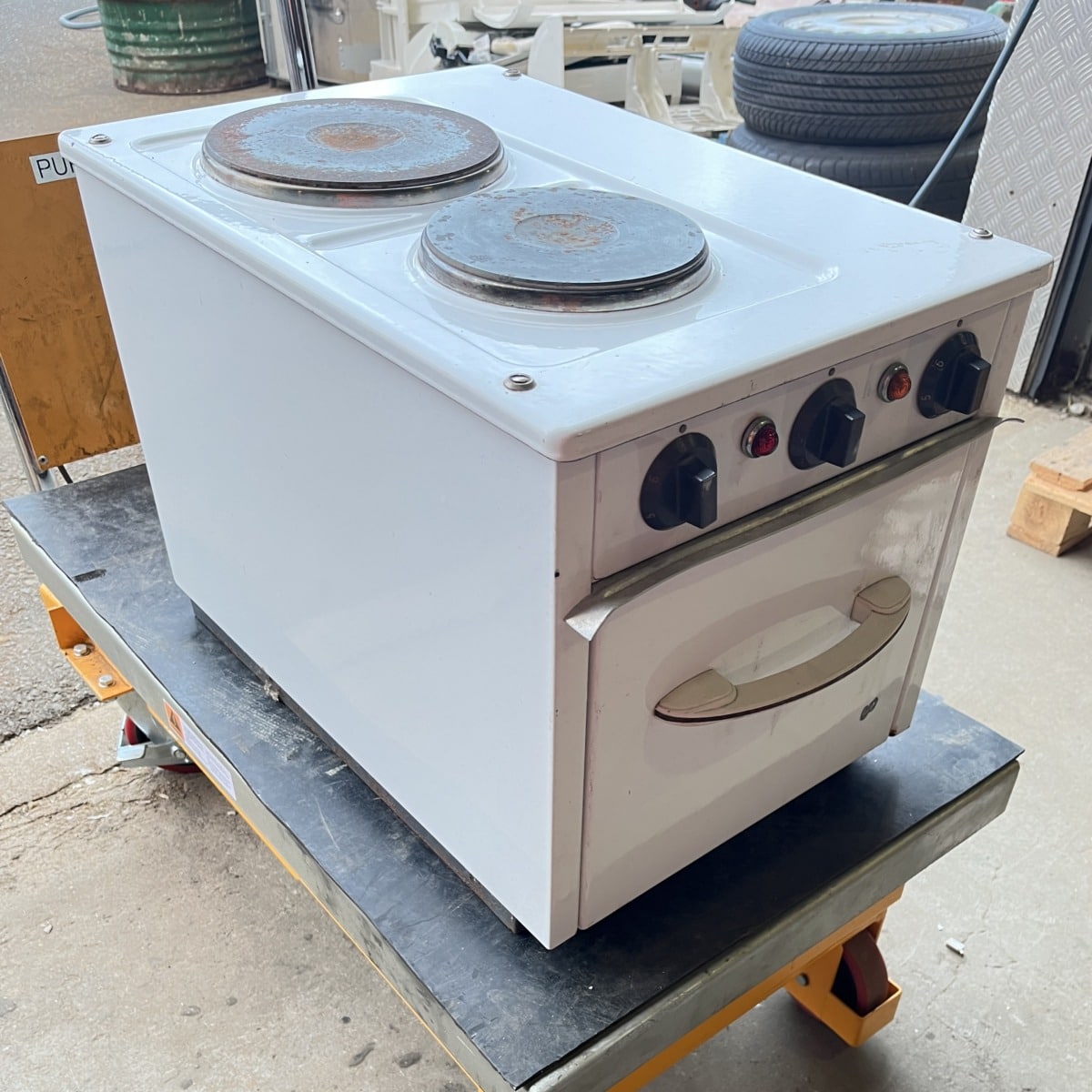 Kahdella keittolevyllä ja uunilla sekä pistotulppaliitännällä.