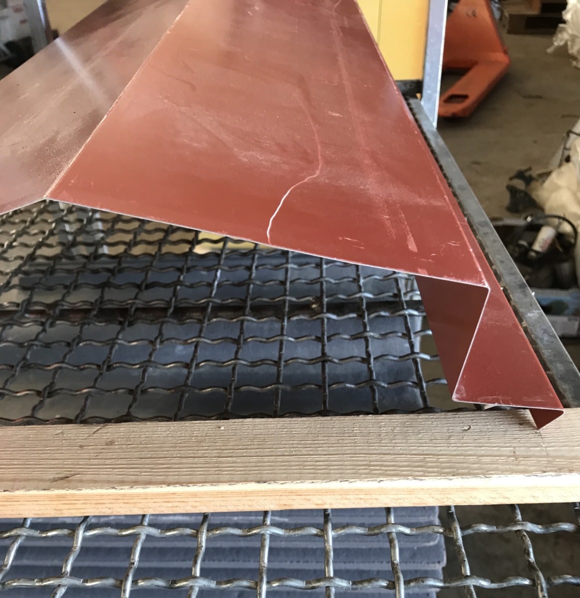 Ilmeisesti harjapelti, reunassa pieni alas- ja sisäänpäintaivutus.