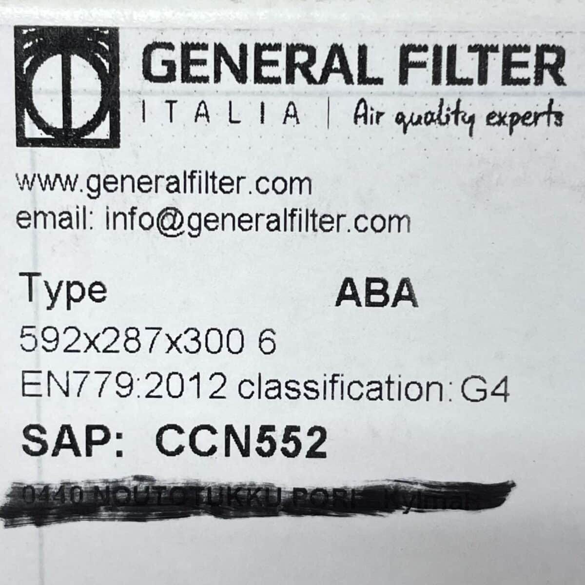 Pussisuodatin General Filter ABA40 592 x 287 x 300 mm 6 G4
