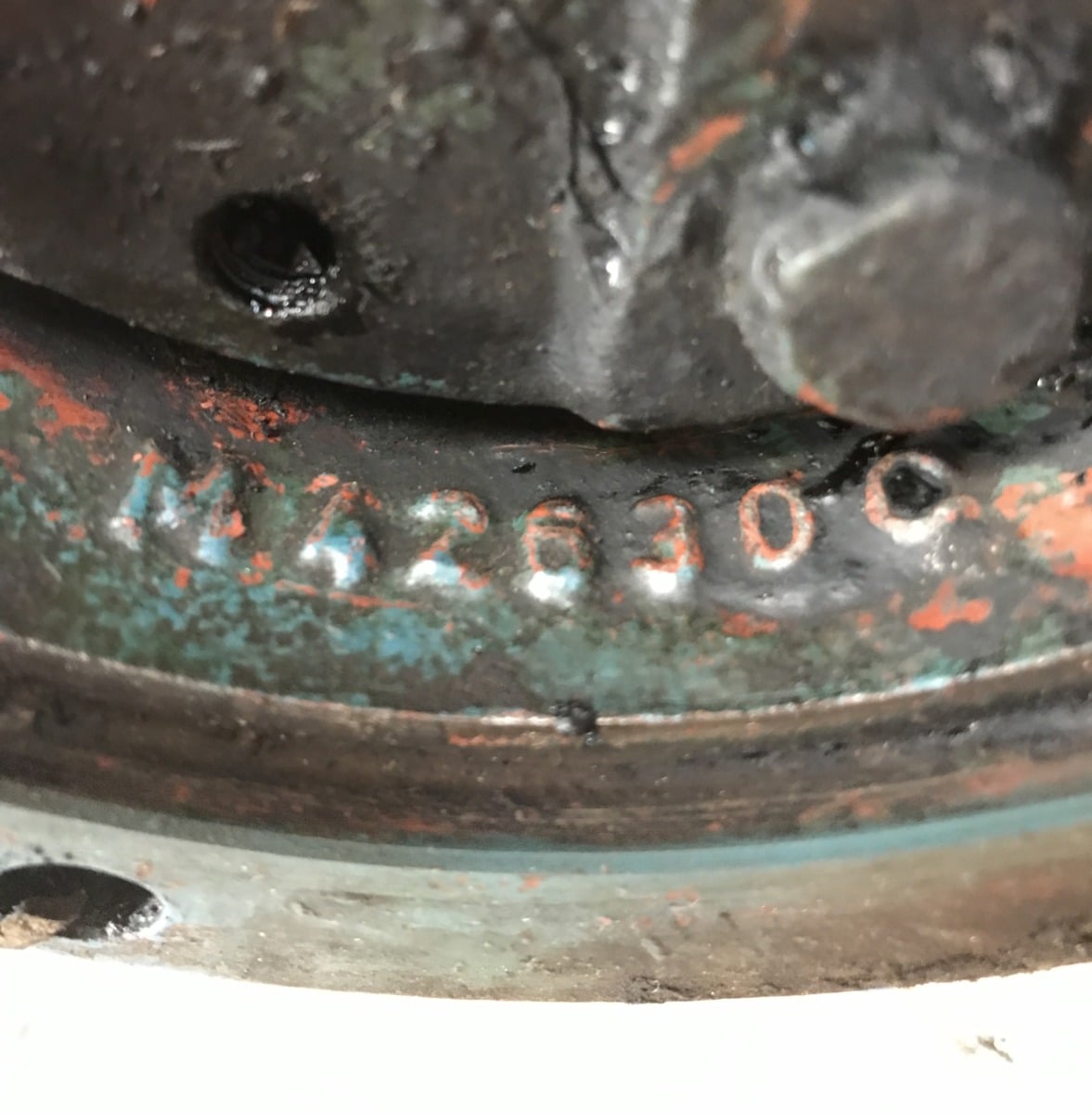 Kiinnityslaipan sisäpuolella valunumero M 42630 C
