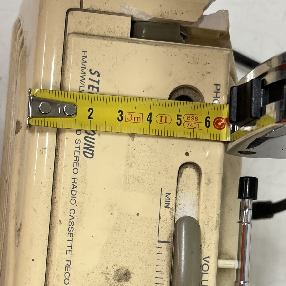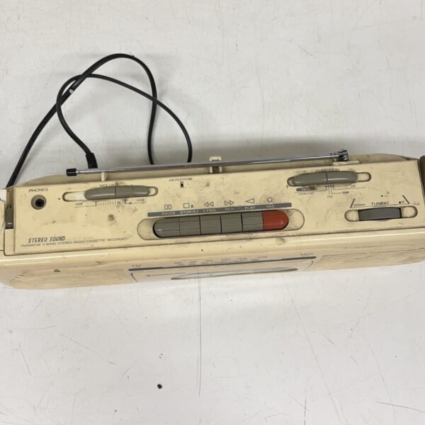 Huom! Radio puoli toimii, kasetti puolesta ei tietoa. Kulmasta puuttuu osa, katso kuvat. Antennin kiinnitys on huono.
