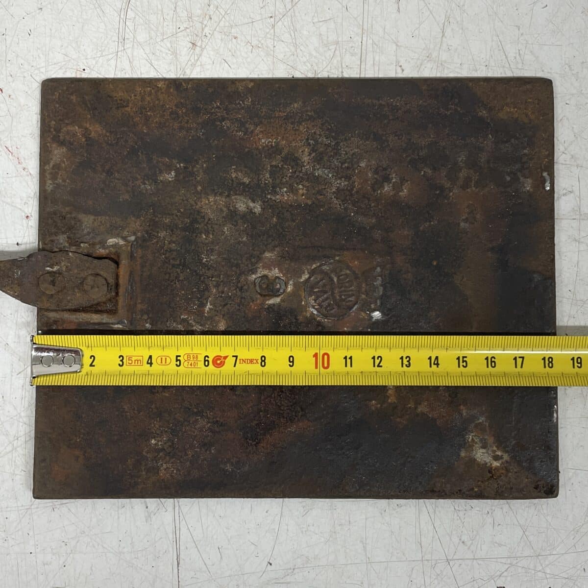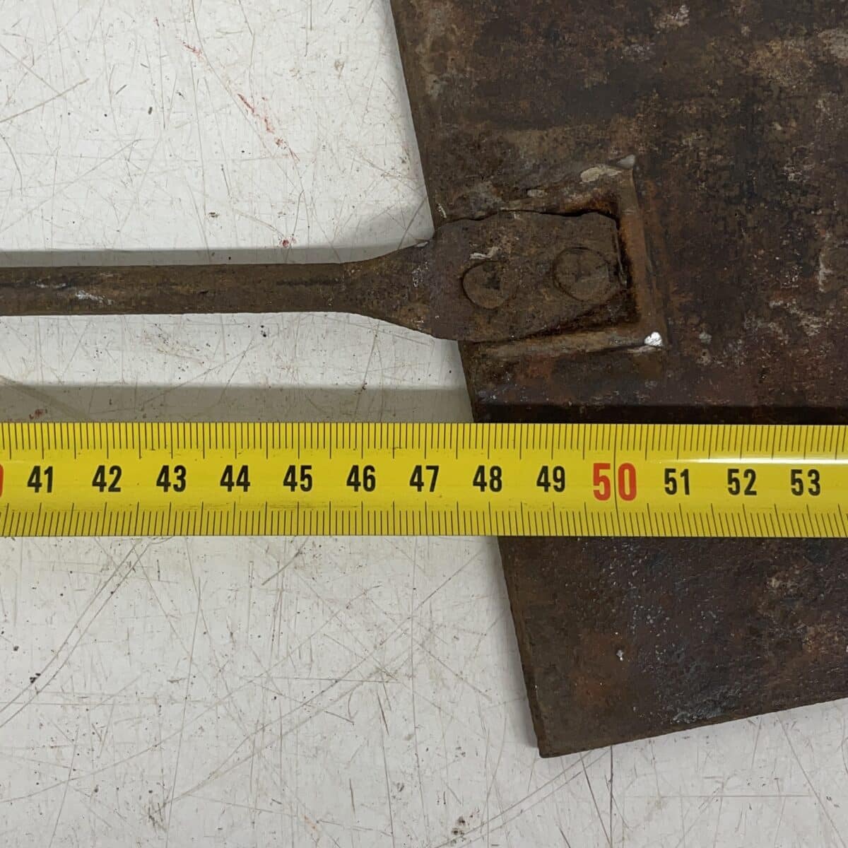 Huom!  Savupellin koukkuosa on rikki. Varsi on vääntynyt. Peltiosan paksuuden mitat voivat vaihdella 3,6 – 3,9 mm välillä.