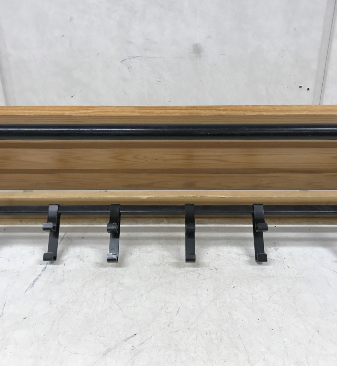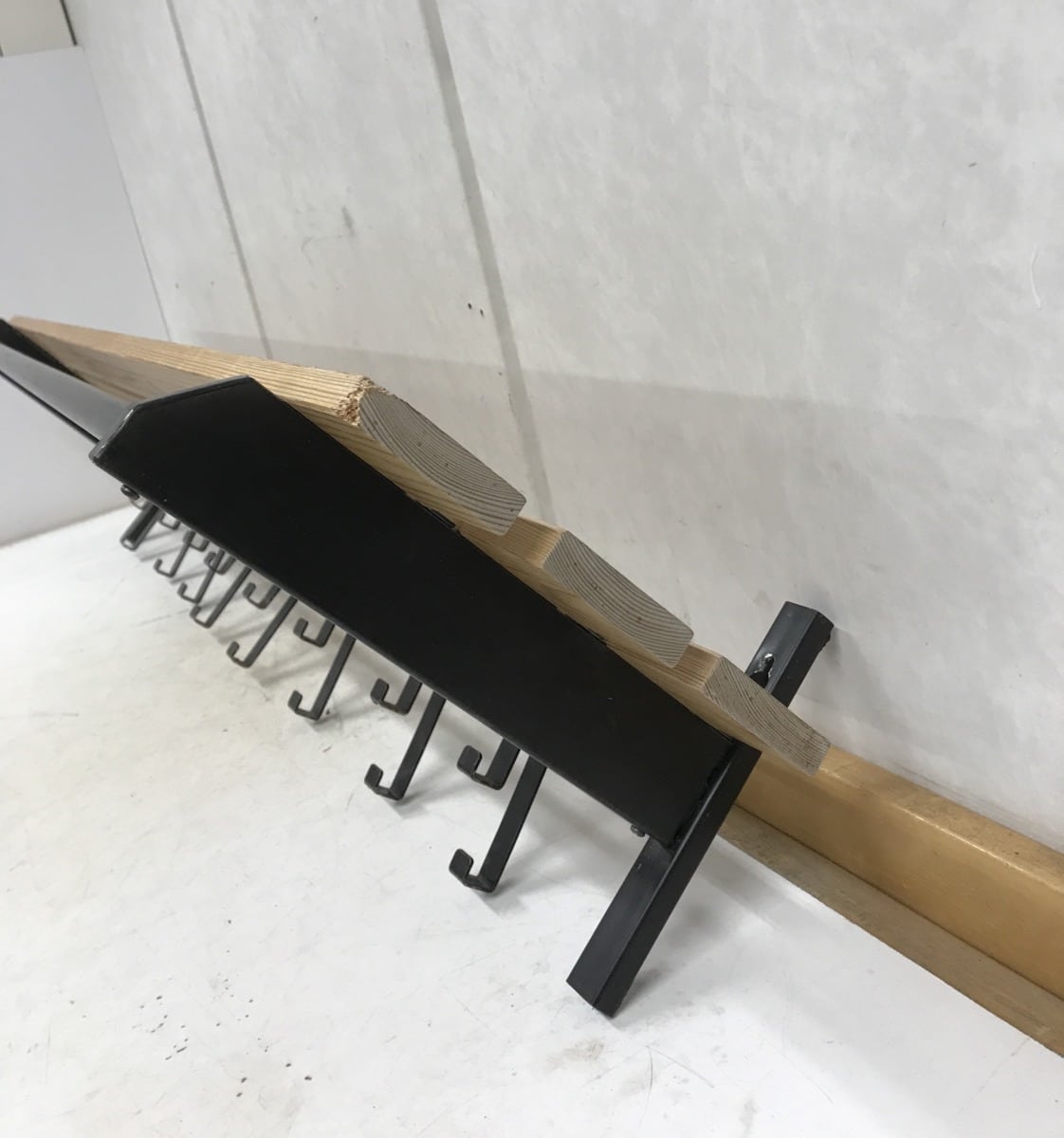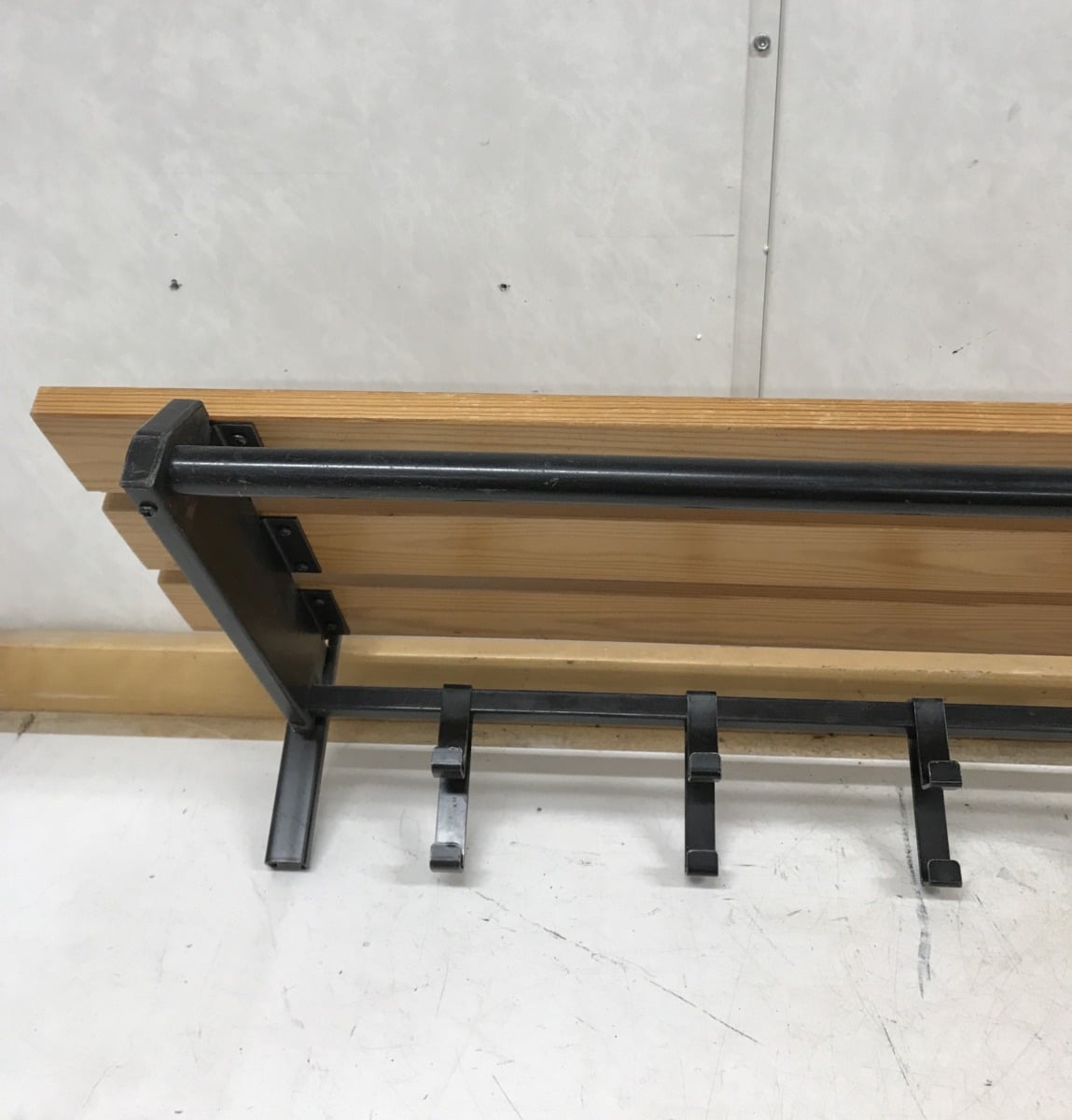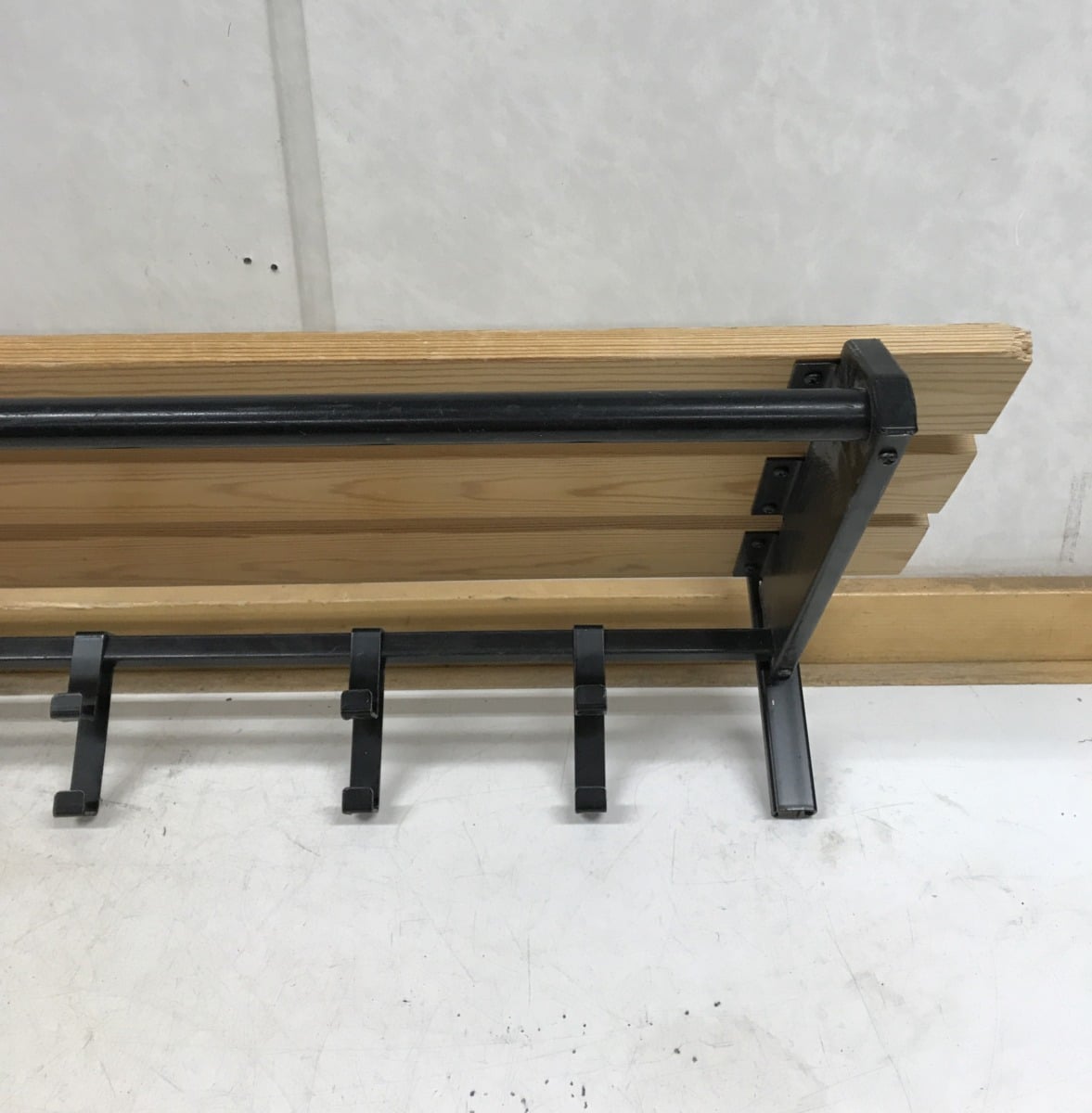 hattuhylly, sekä mustat siirrettävät metallikoukut.