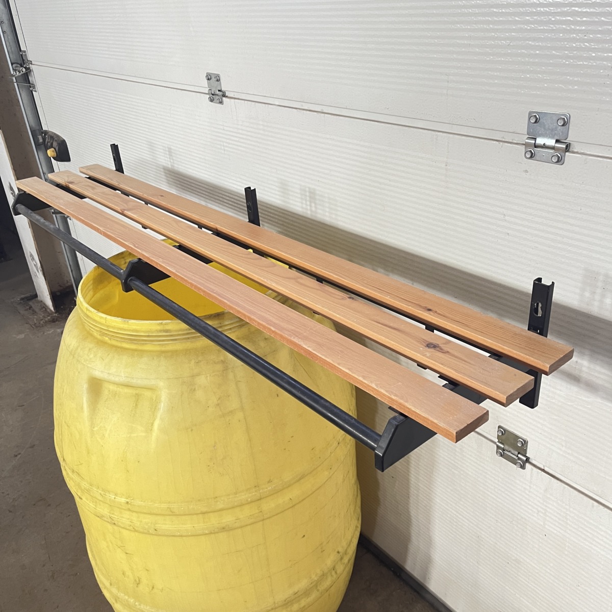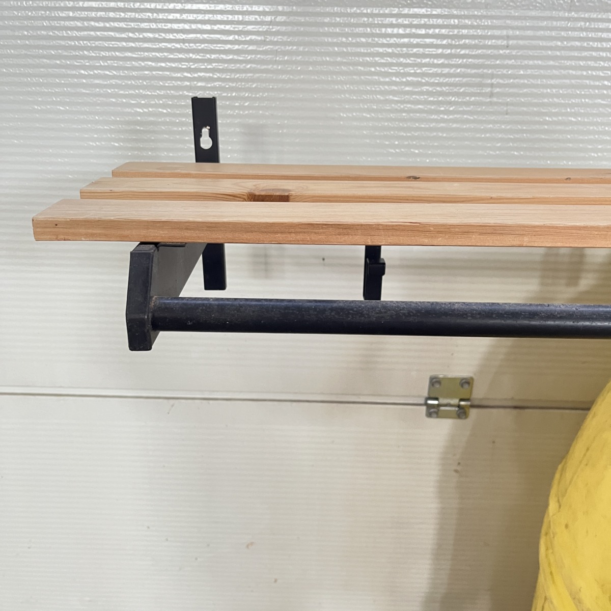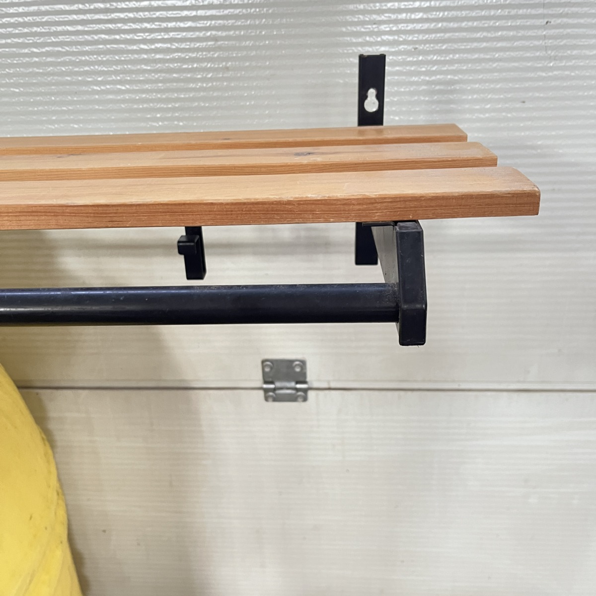 hattuhylly, sekä mustat siirrettävät metallikoukut.