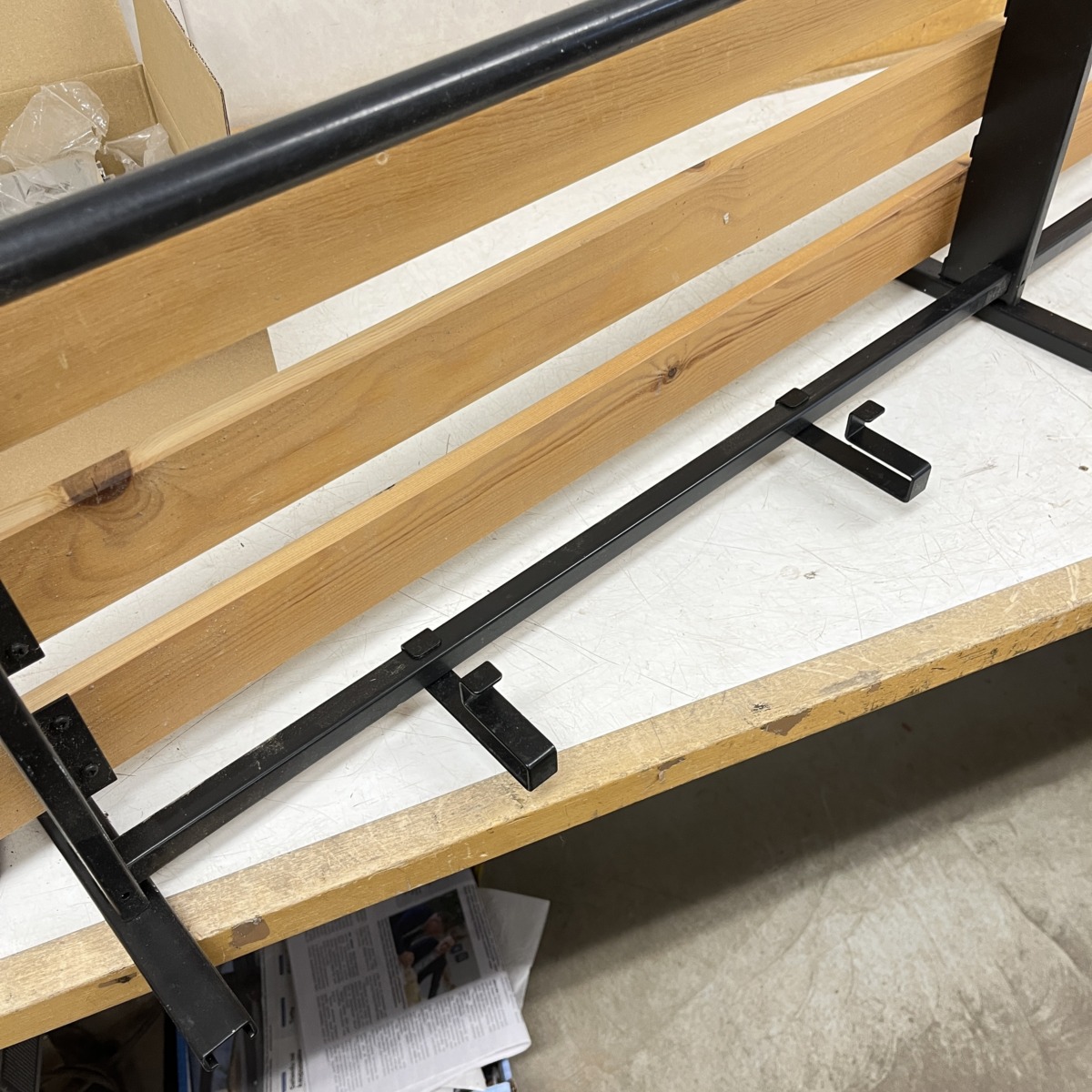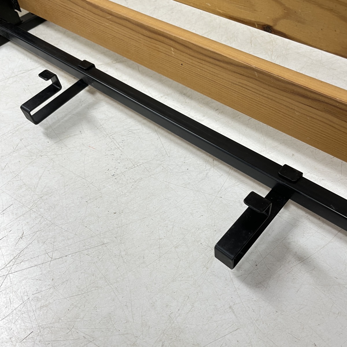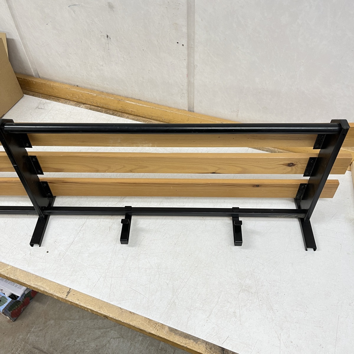 Materiaali: Mustaksi maalattu teräsrunko ja puinen
