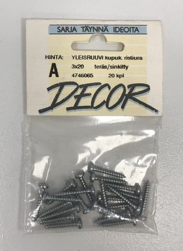 Sinkitty ruuvi 3×20 mm, kupukanta ristiuralla 20 kpl