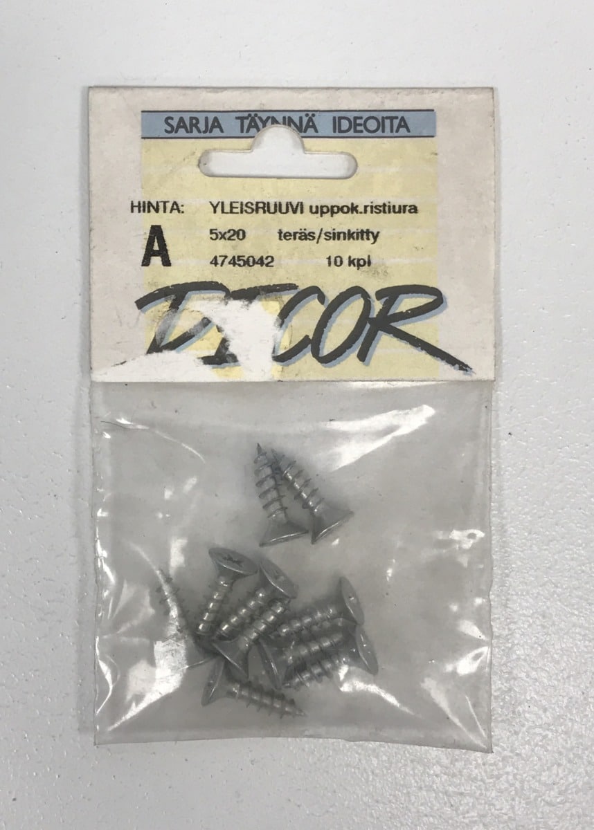 Sinkitty ruuvi 5×20 mm, uppokanta ristiuralla 10 kpl