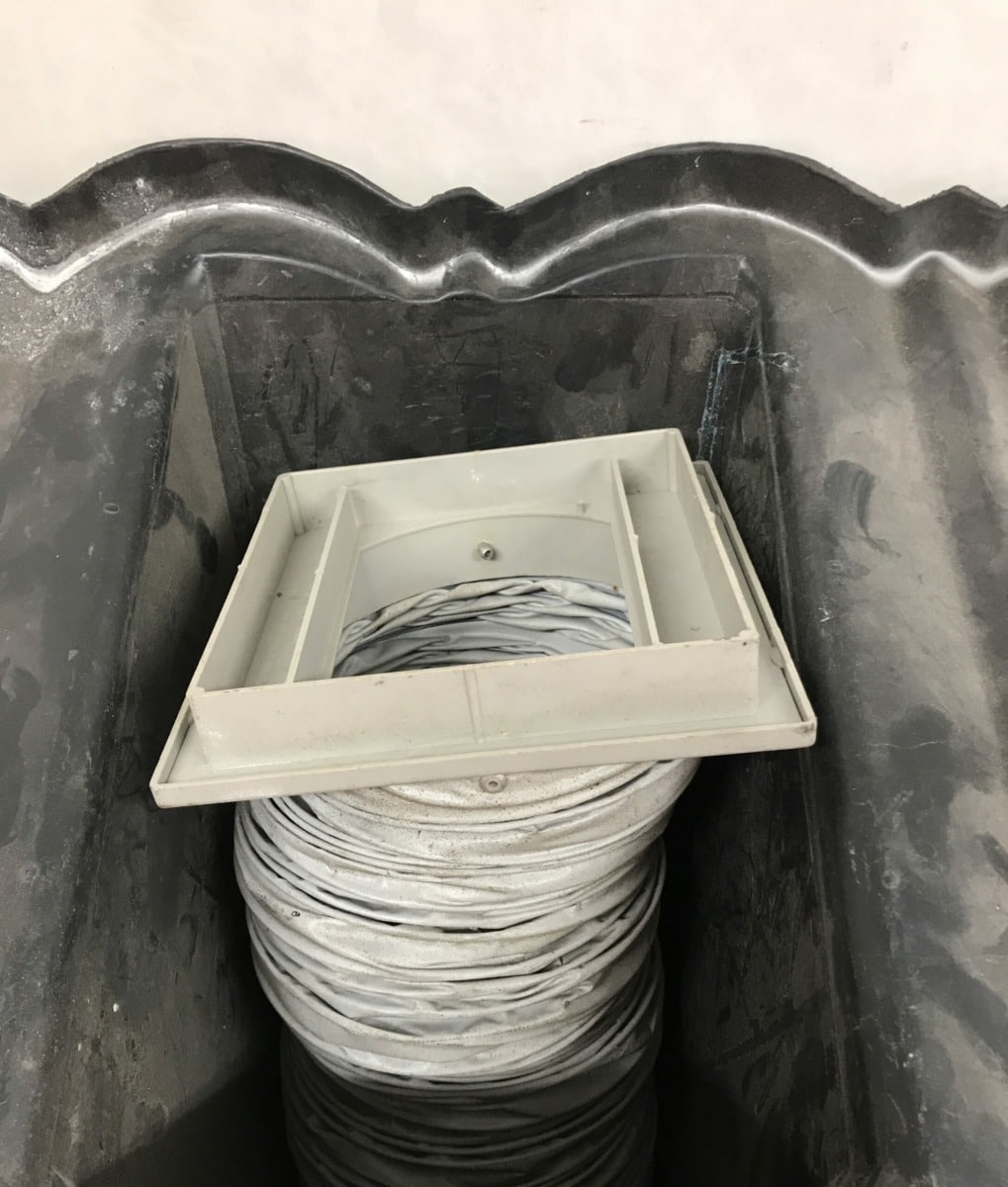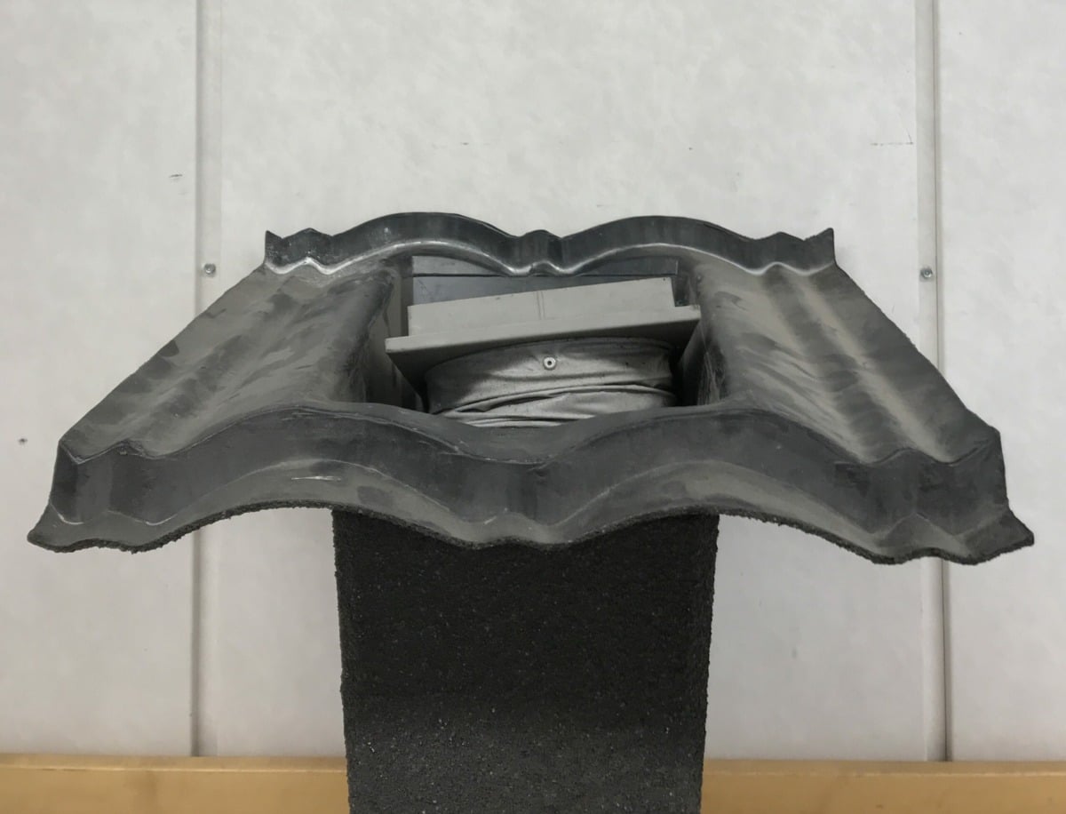 Tiilikaton musta ilmastointiputken hattu