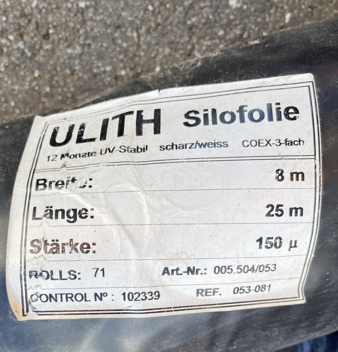 Ulith säilörehukalvo 8 m × 25 m tehtaan paketissa