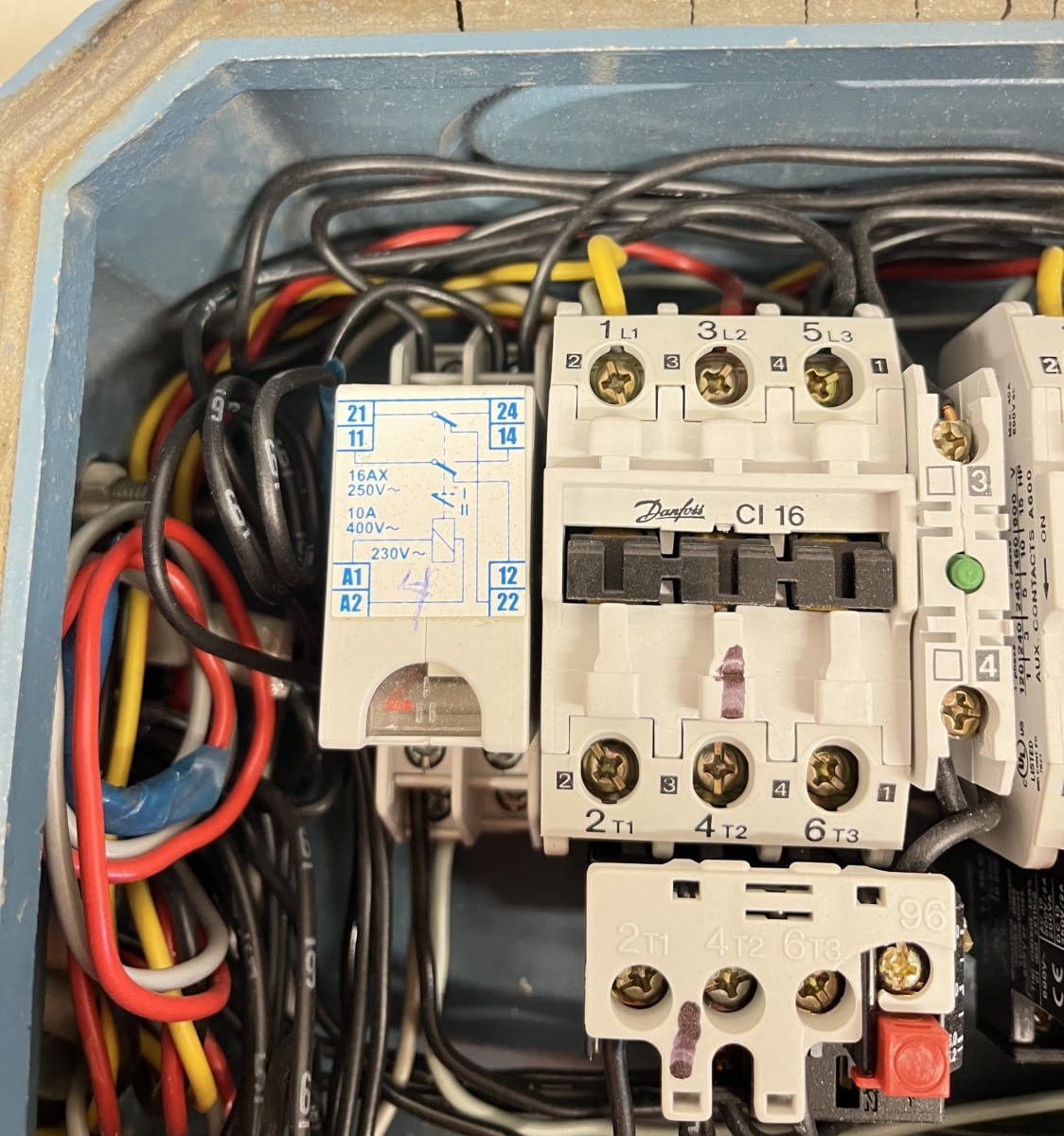 •2 kpl Danfoss CI 16 kontaktoria apukärjillä ja lämpöreleillä,