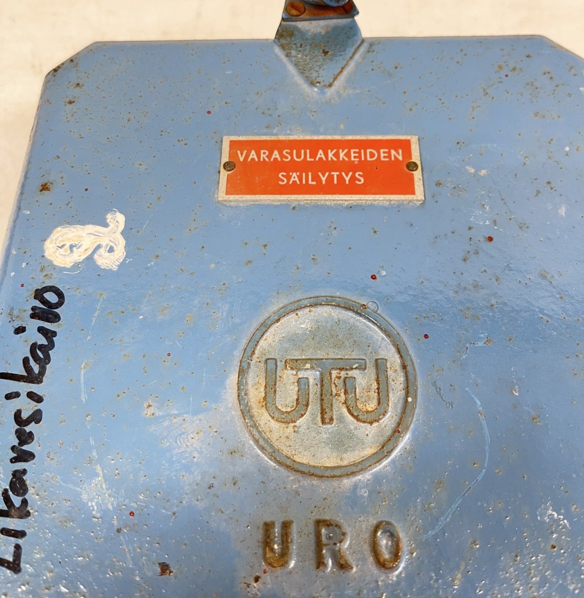 Materiaali: Maalattu sininen valurautakotelo