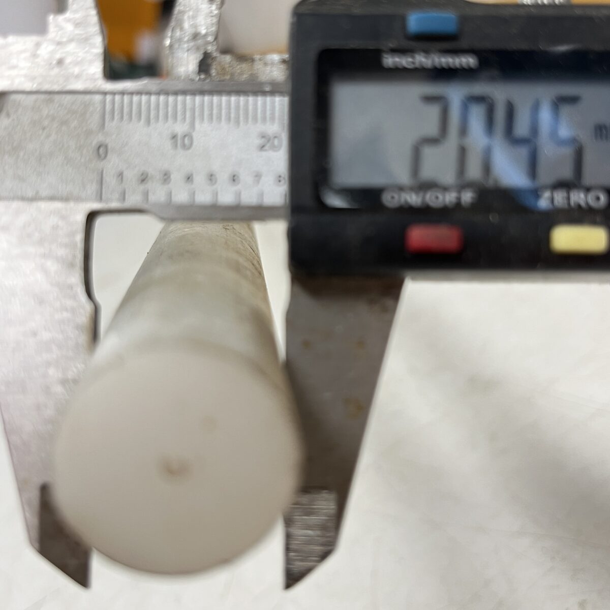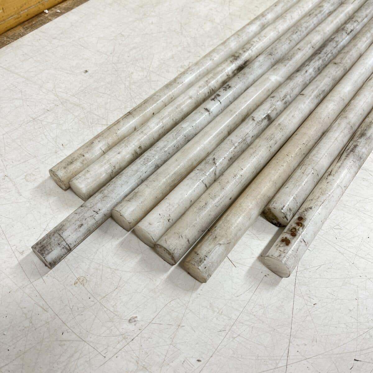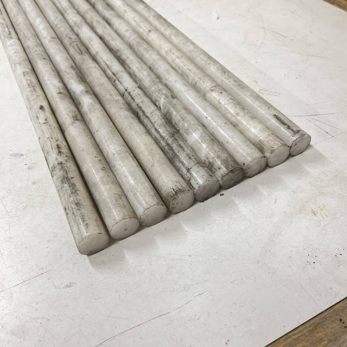 Valkoinen Teflon (?) pyörötanko Ø 20 mm pituus min. 93 cm