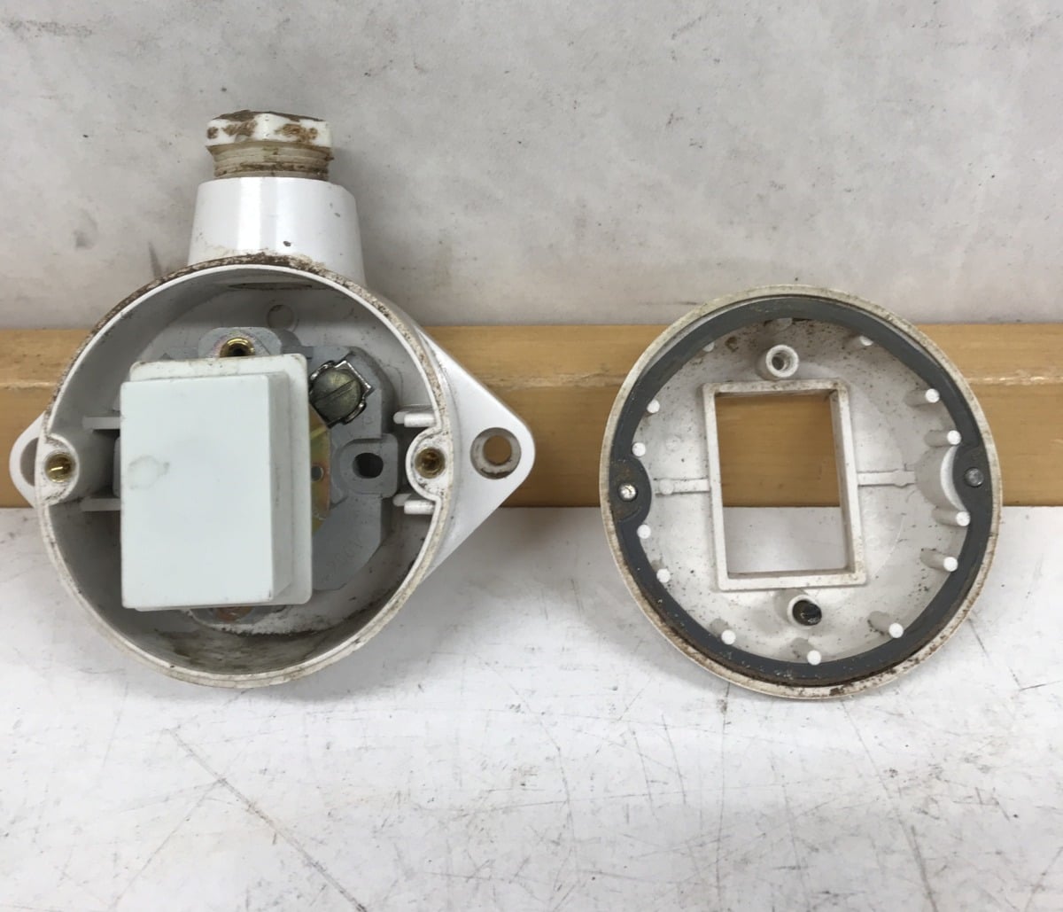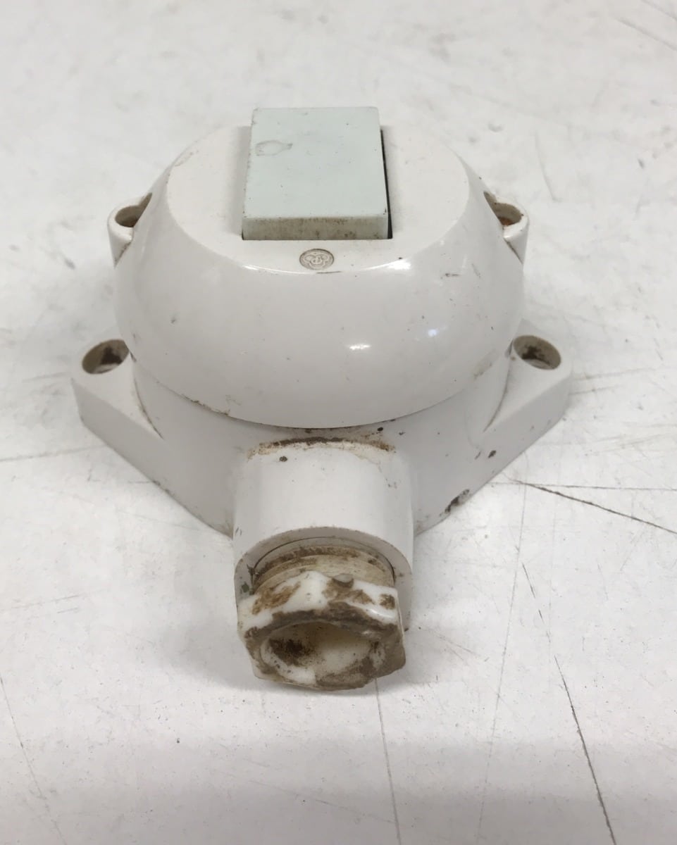 Vanha kosteantilan valaistuksen painonappi 0599 merkkilampulla