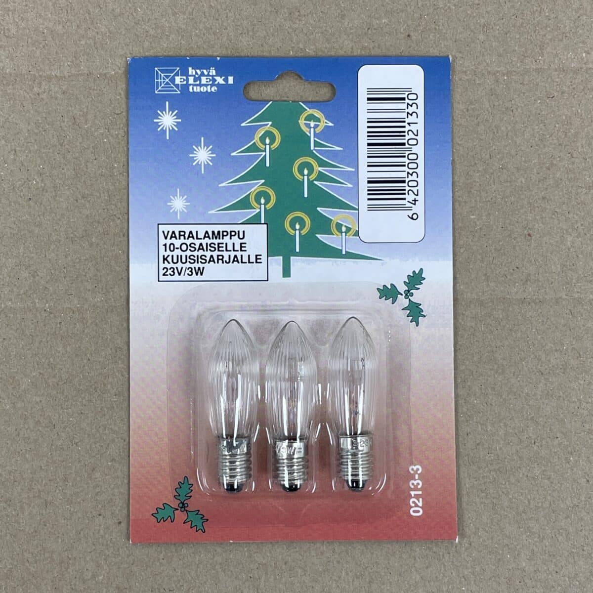 Huom! Myydään 3 kpl paketeissa. Varalamppu 10-osaisen joulukuusen lamppusarjaan.