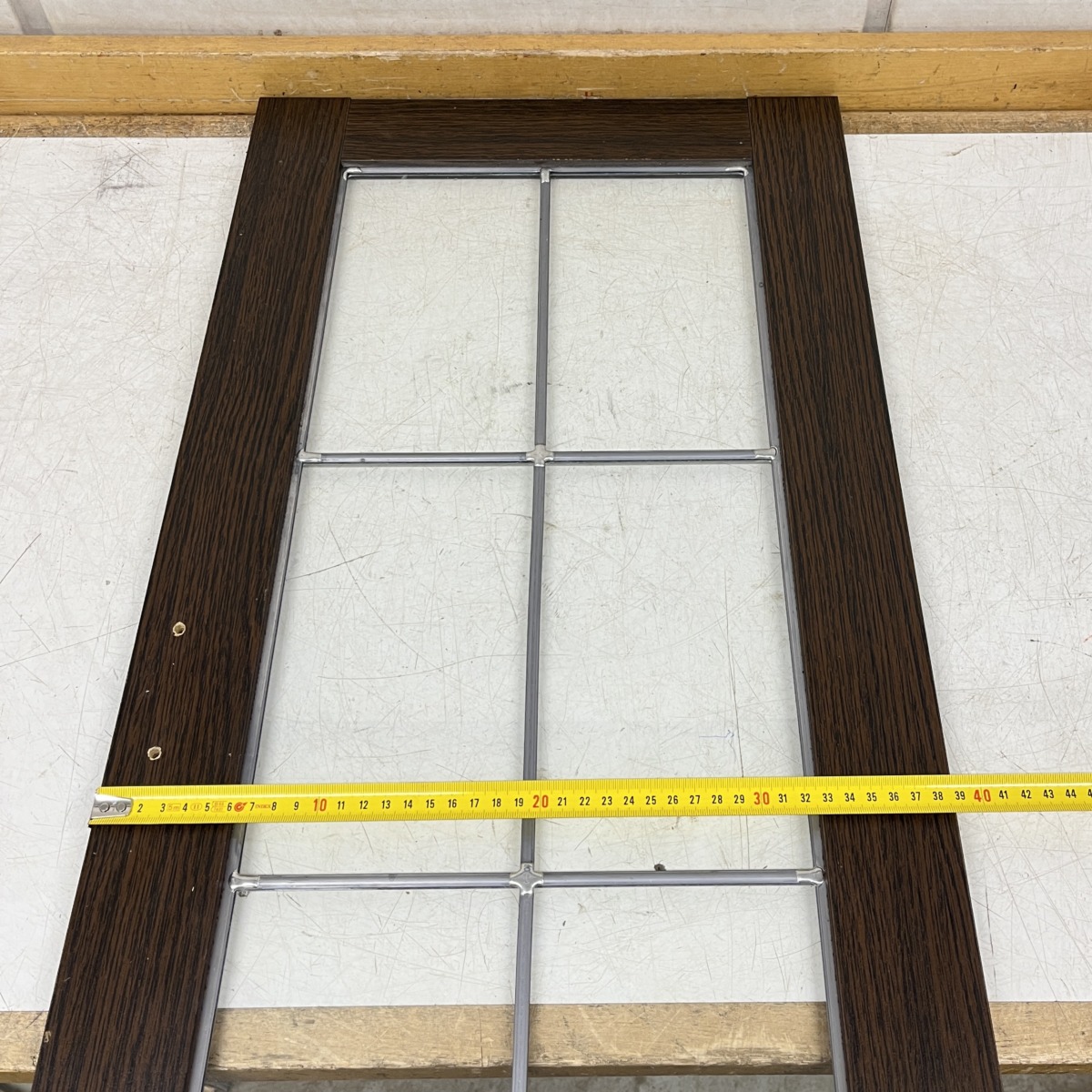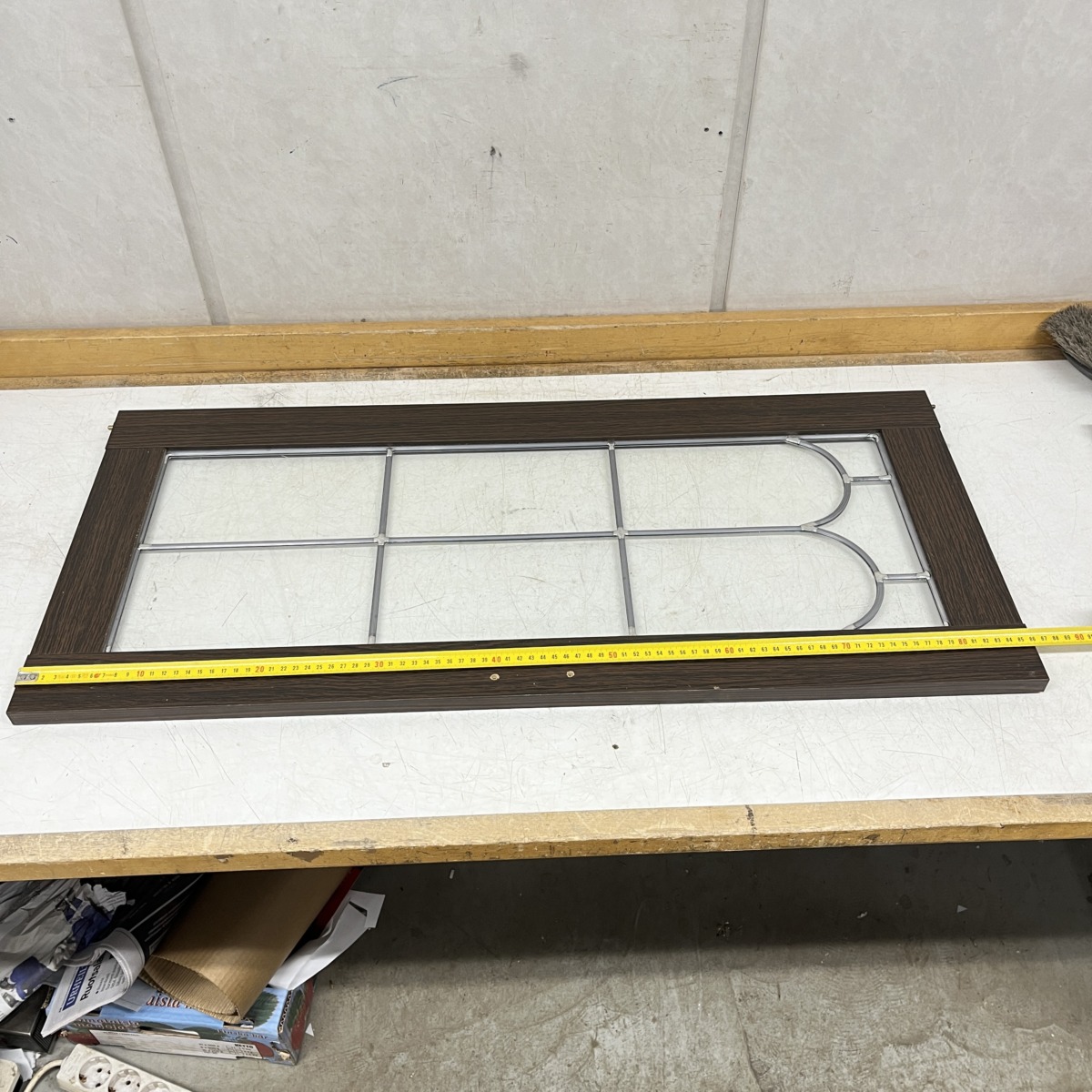 Vitriinin ovi 39 cm × 86 cm vasenkätinen koristelasilla ruskea