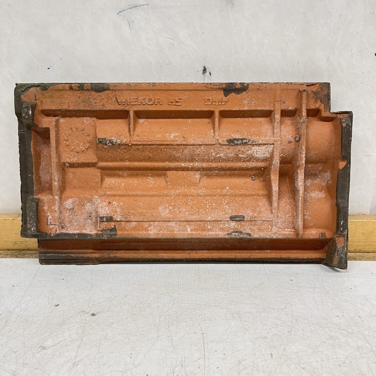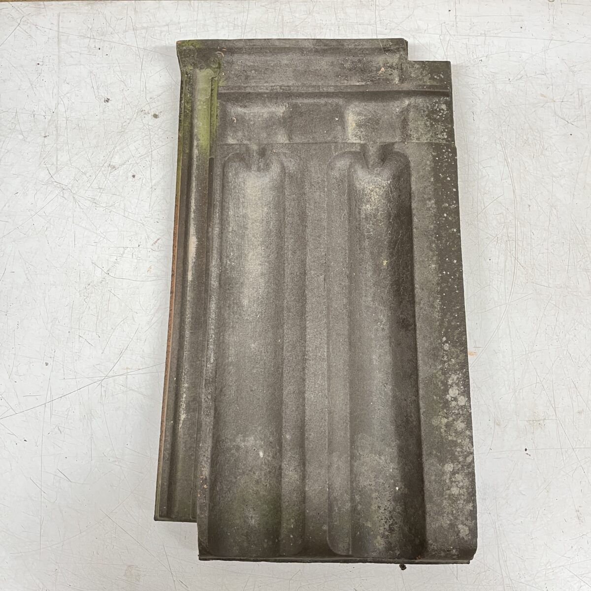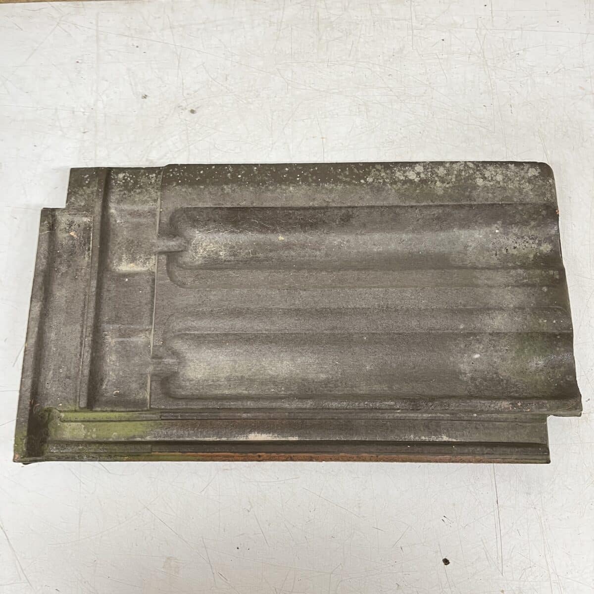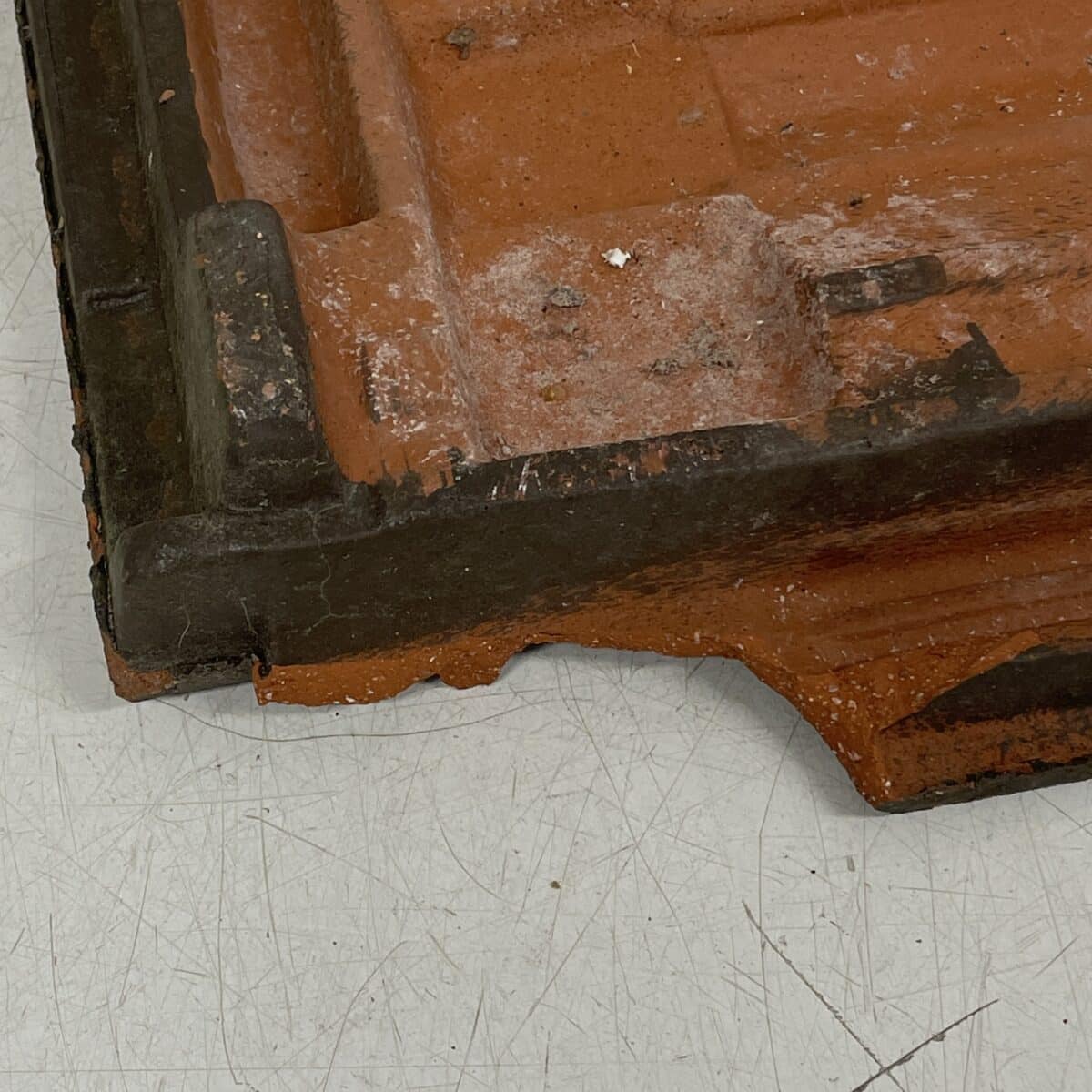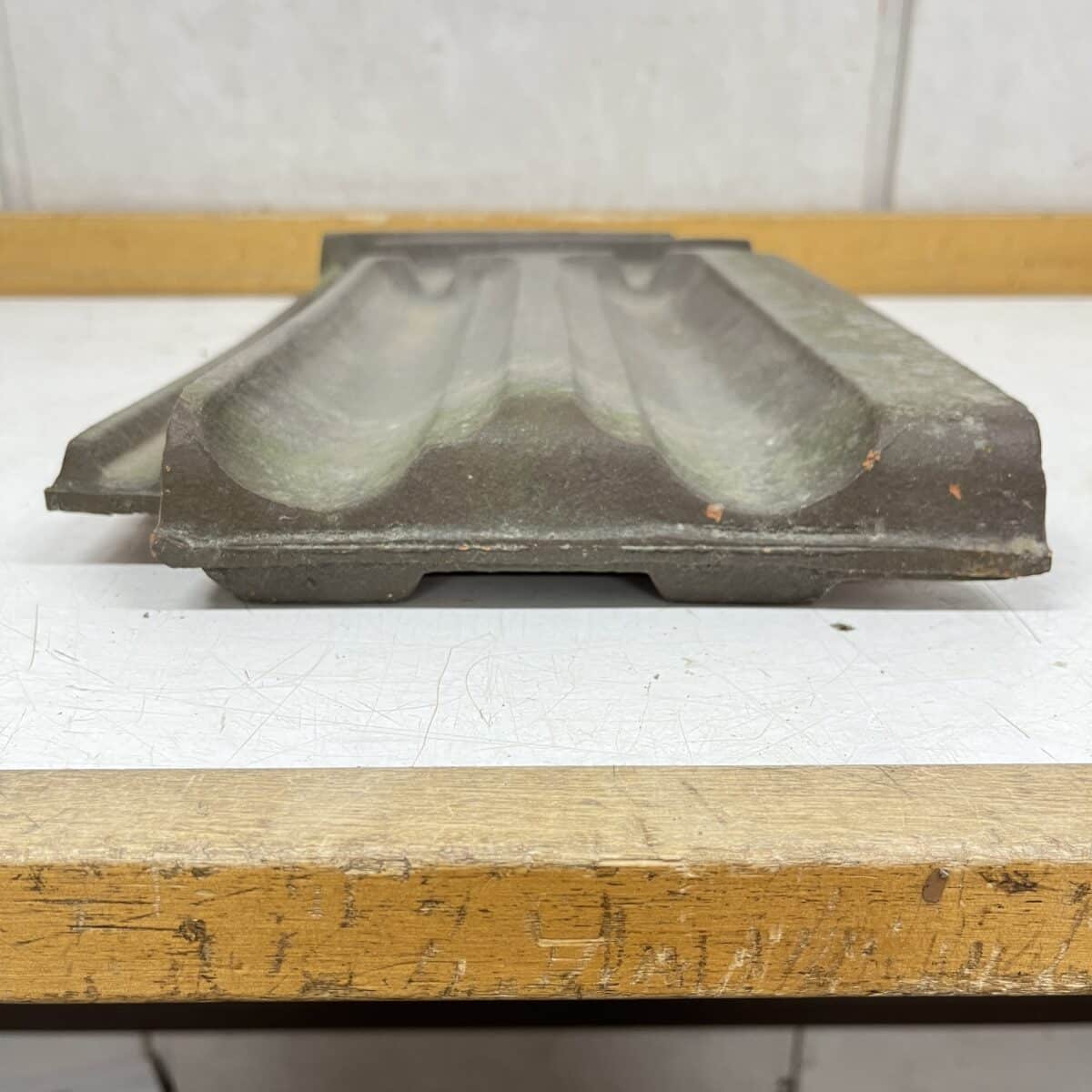 Huom! Tiili ollut punainen, maalattu ruskeaksi. Mittakuvat vastaavanlaisesta ehjästä mustasta kattotiilestä. Tiilissä voi olla sammalta tai yms. likaa,